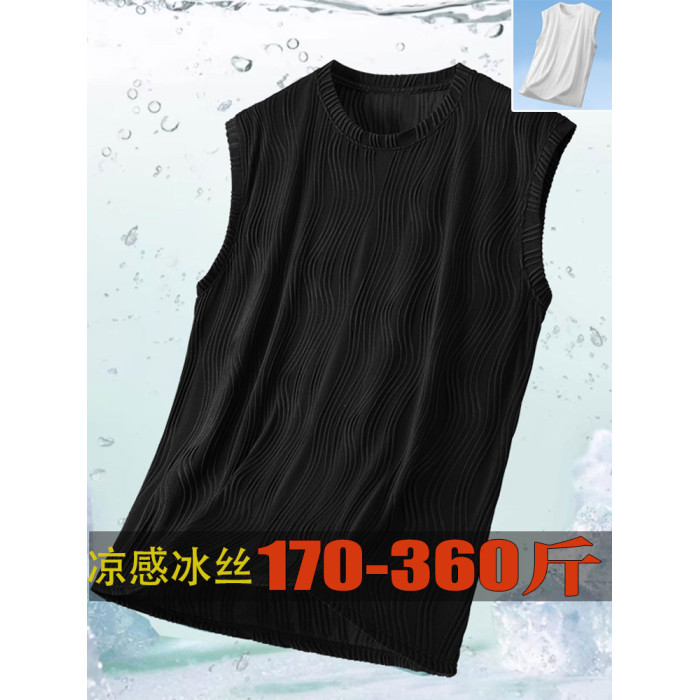 360斤冰絲涼感透氣彈力背心oversize坎肩無袖t恤加肥加大運動汗衫