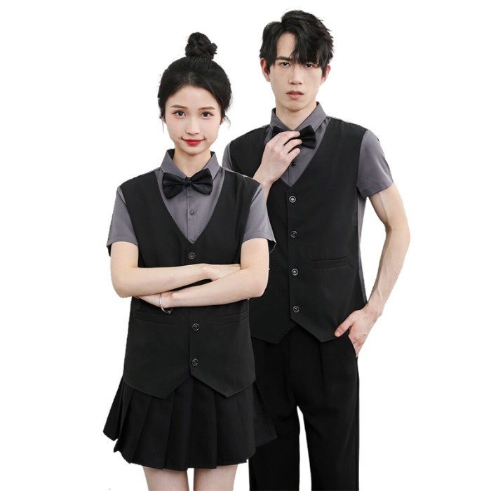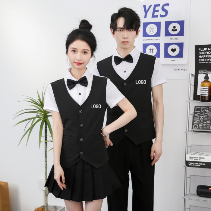 台球廳娛樂會所KTV服務員工作服短袖襯衫假馬甲酒店吧服務生工衣