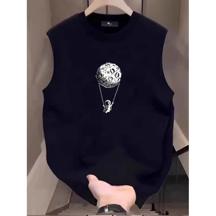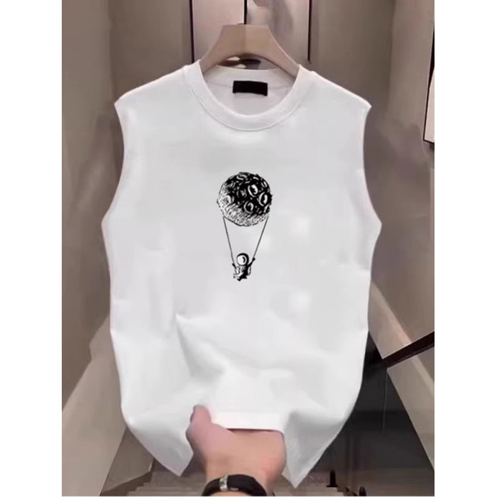 潮牌純棉無袖t恤背心男士2025新款夏季印花寬松籃球運動上衣男款