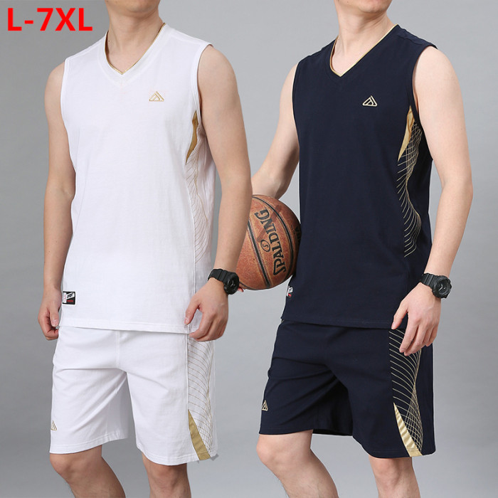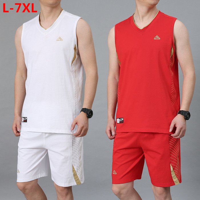 背心短褲套裝男純棉透氣加肥加大中年休閒晨練運動跑步健身籃球服