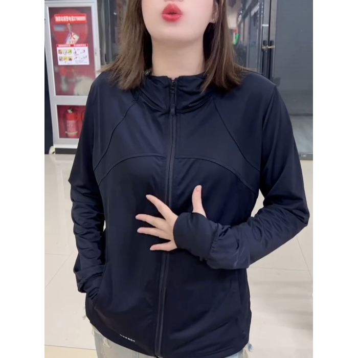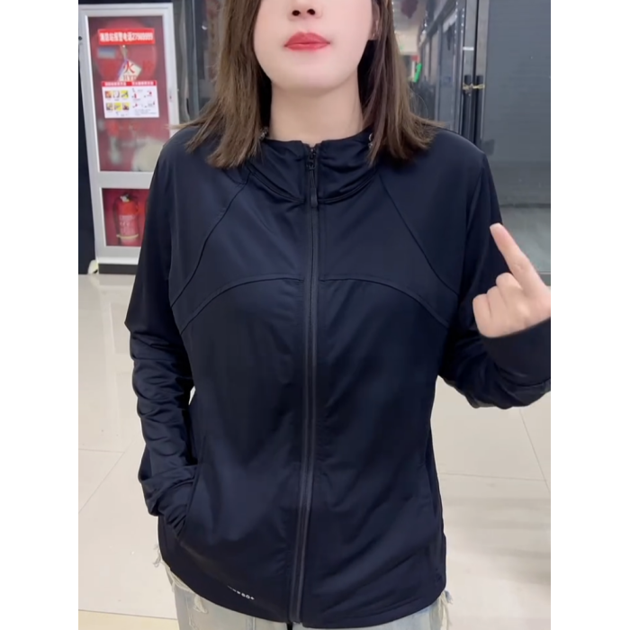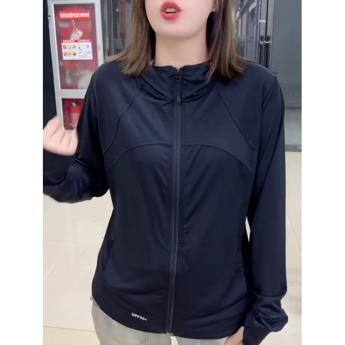 2025夏季新款戶外防曬外套女百搭純色上衣休閒長袖連帽黑色防曬衣