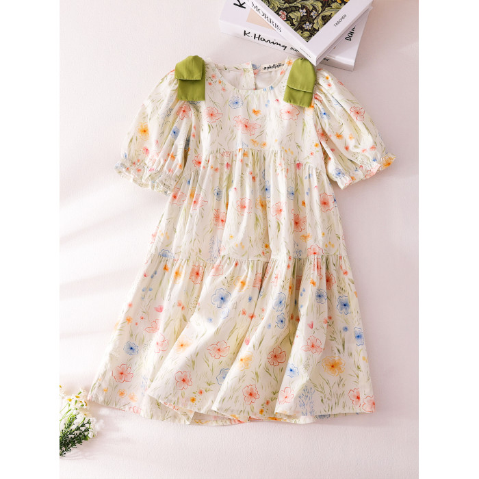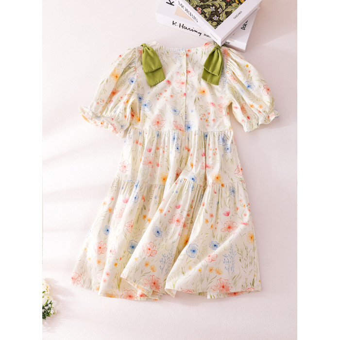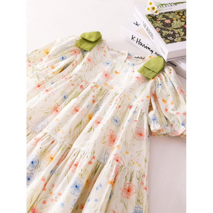 蔚未來女童連衣裙夏季2025新款兒童洋氣碎花裙女大童純棉A字裙薄