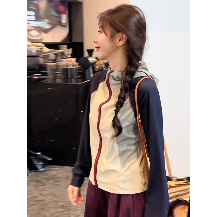 連帽撞色防曬衣