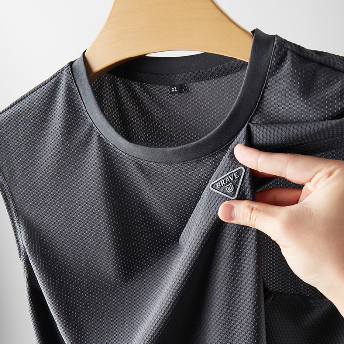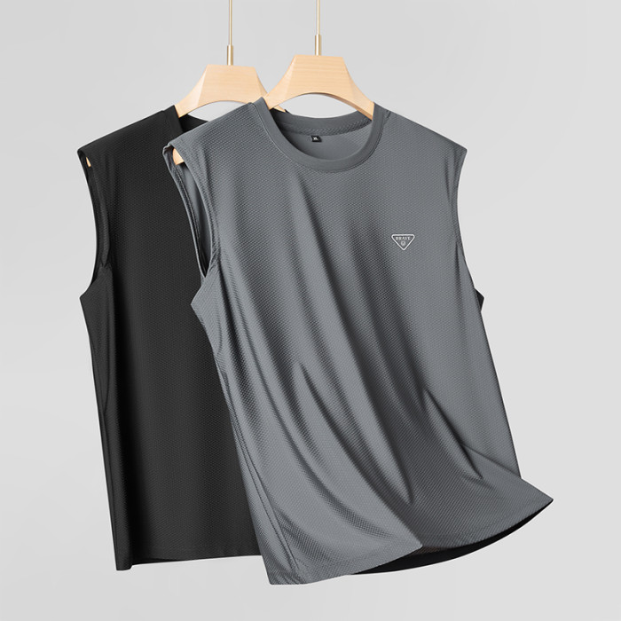 胖哥無袖t恤男士夏季冰絲大碼背心寬松潮流圓領加肥加大透氣坎肩