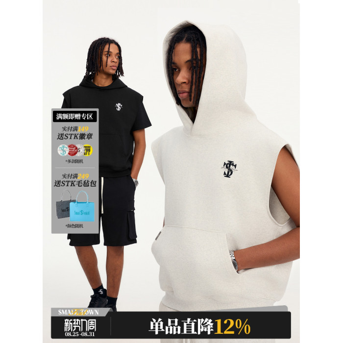 STK Small Town Kid 基礎坎肩衛衣背心刺綉針織無袖連帽衛衣