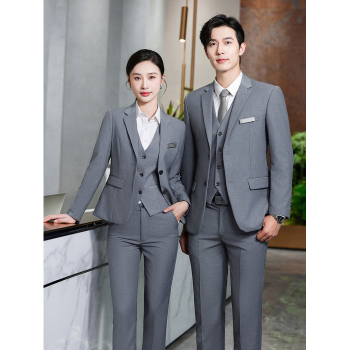 寶藍色西服+褲子+馬甲+白襯衫 女