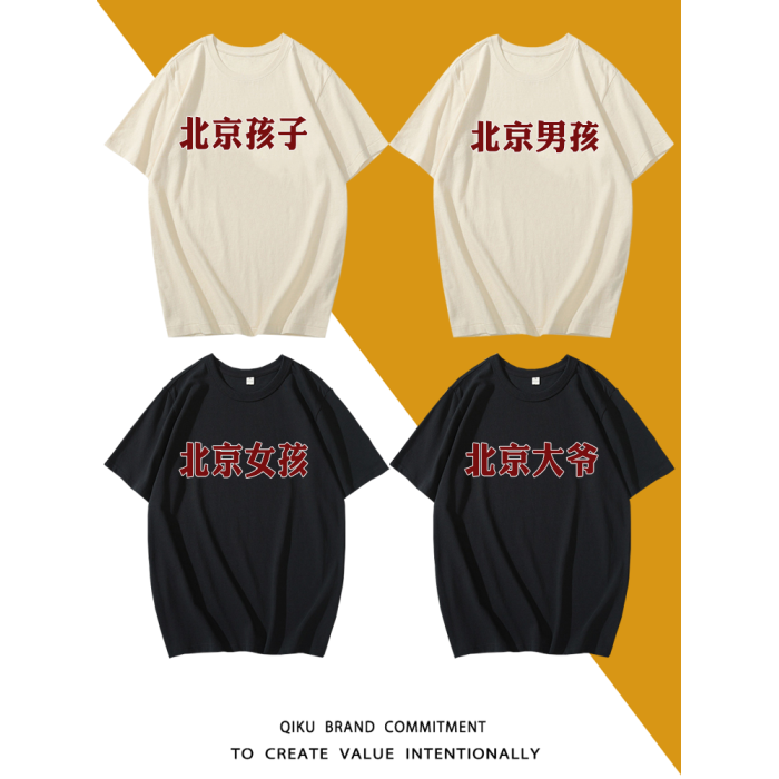 北京孩子T恤短袖北京男孩女孩大爺半袖體恤衫趣味純棉上衣服背心