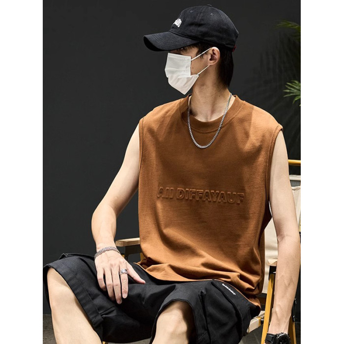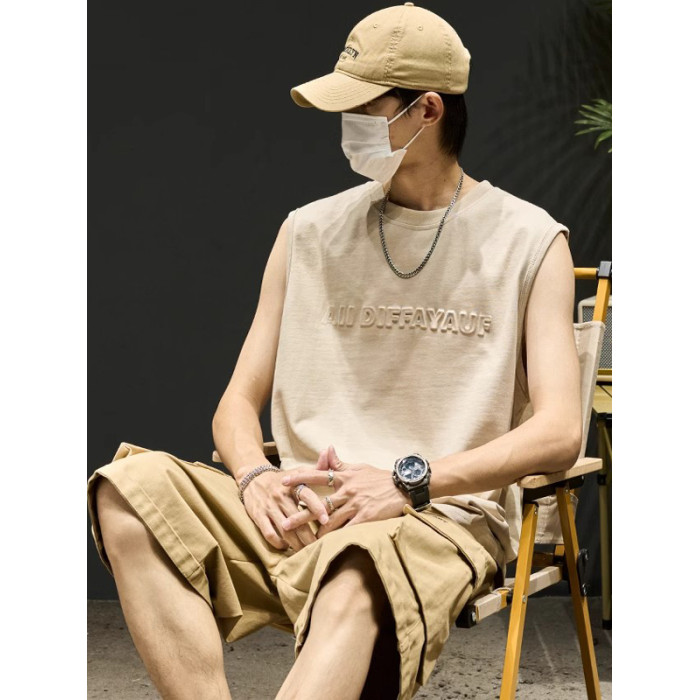 倉石一樹無袖t恤男ins日系簡約寬肩砍袖寬松純棉運動坎肩背心外穿