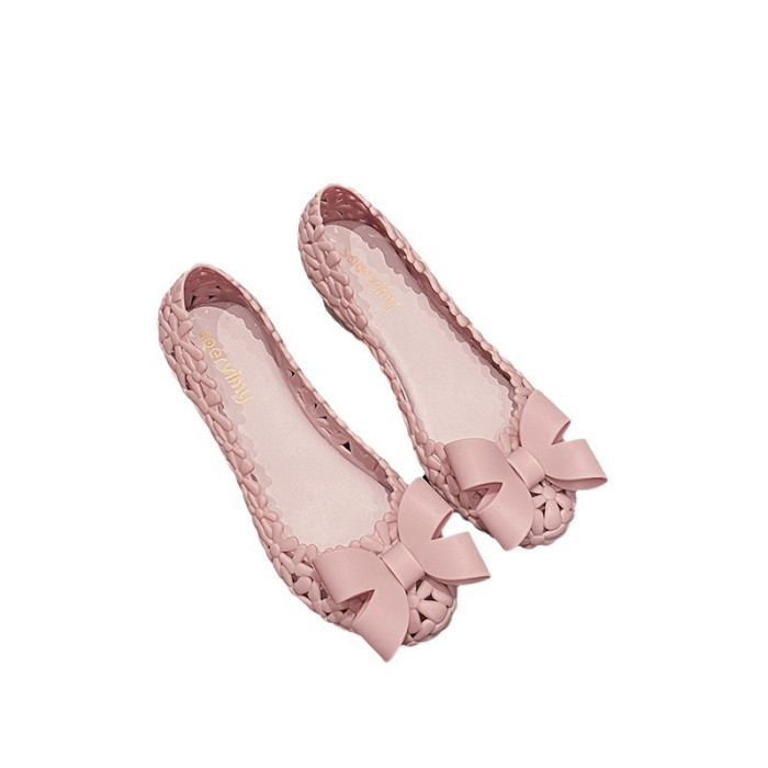 涼鞋女2024夏季新款外穿時尚鏤空休閒防滑淺口蝴蝶結坡跟包頭涼鞋