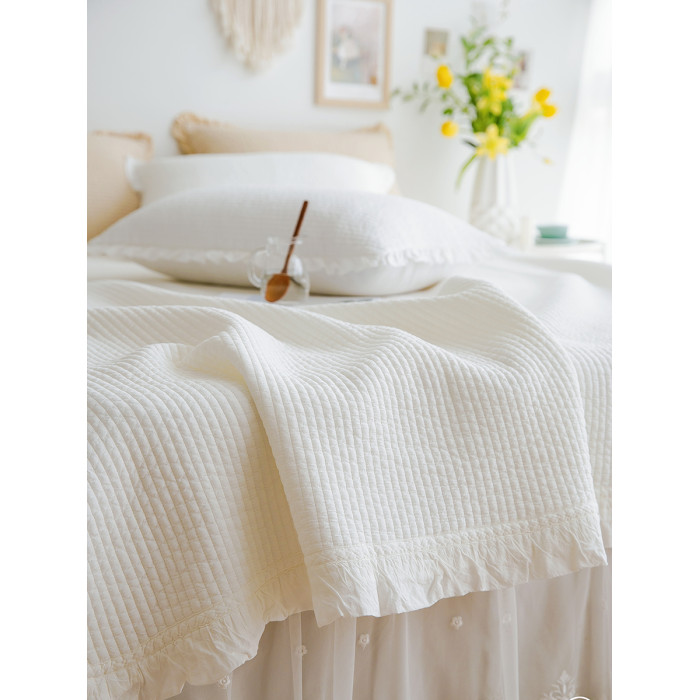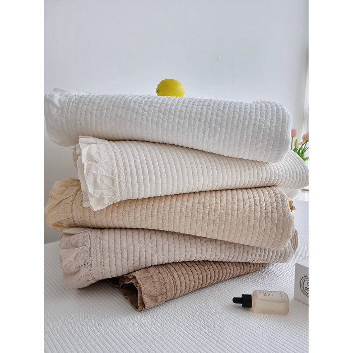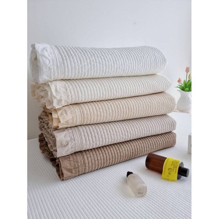 經典款 自畱N條 初異秀奶油系抗菌韓式水洗木棉防滑床單床蓋兩用
