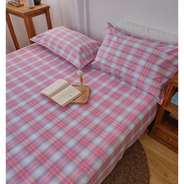 純棉老粗布床單單件帆布條紋格子吸汗透氣加厚三件套四季通用棉麻