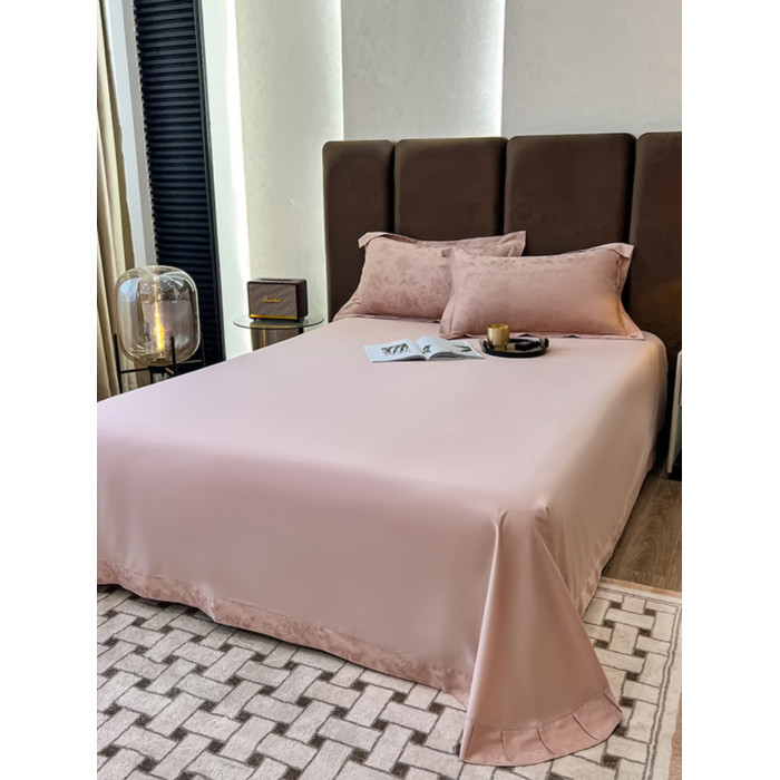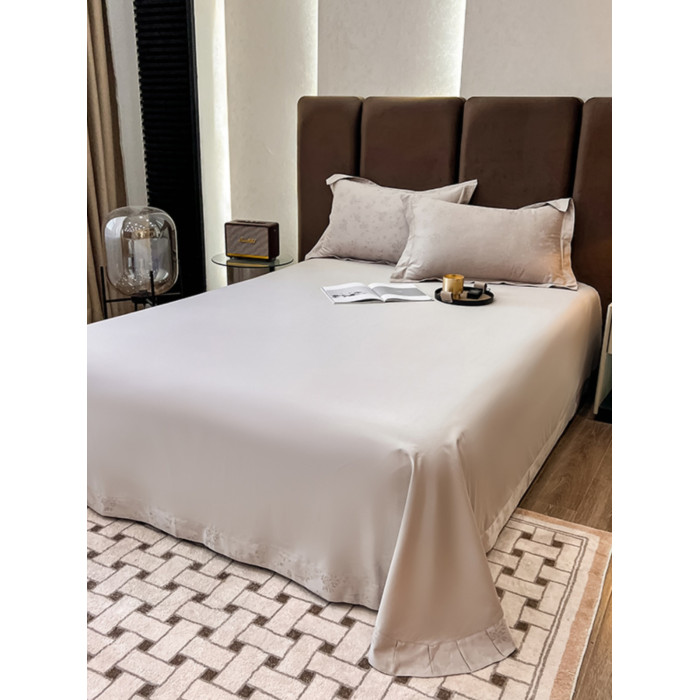 高級輕奢100支長絨棉提花圓角貼邊純色床單簡約提花拼邊1.5/1.8床