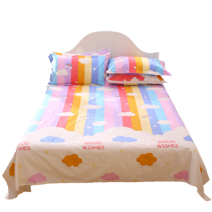 老粗布床單三件套純棉全棉加厚大炕單加密夏可愛卡通床笠單件被單