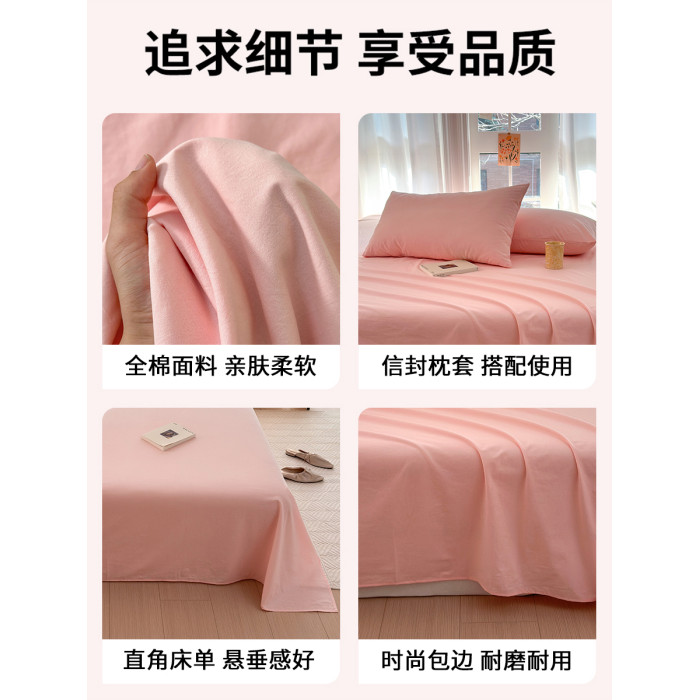 A類100%純棉床單單件全棉水洗單人床被單學生宿舍枕套2三件套雙人
