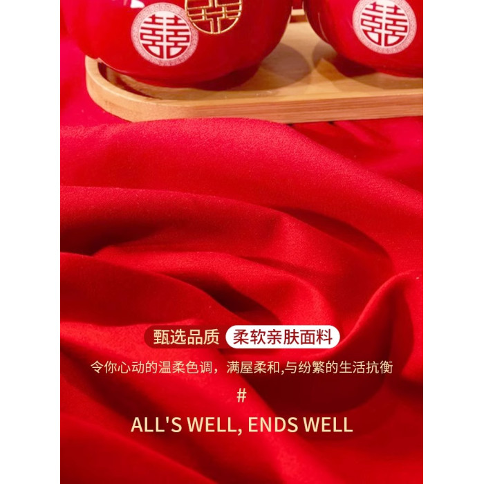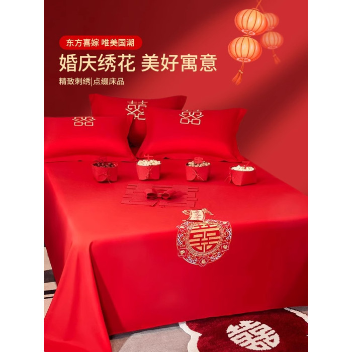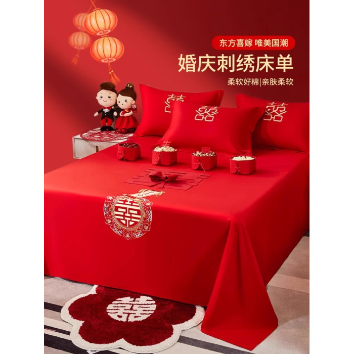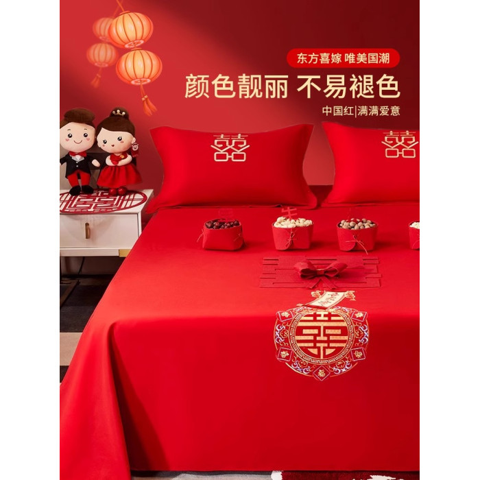結婚床單單件大紅色婚慶喜慶被單枕套三件套雙人新房新婚中式婚嫁