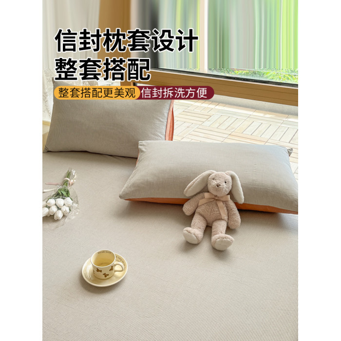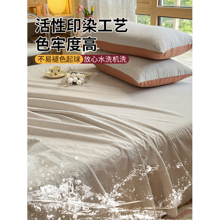 簡約ins純棉水洗棉床單單件全棉100宿舍純色被單人枕套床上三件套