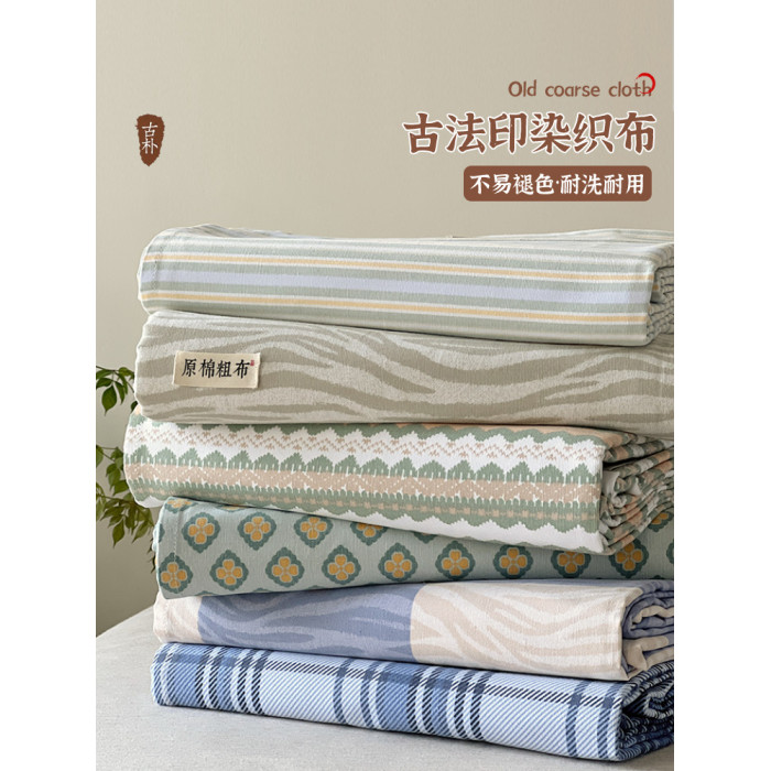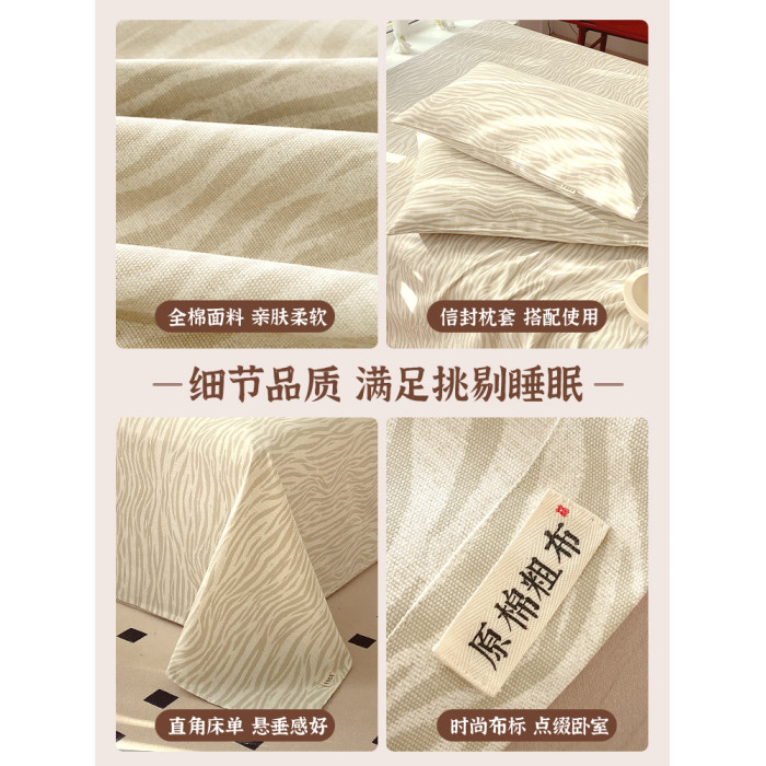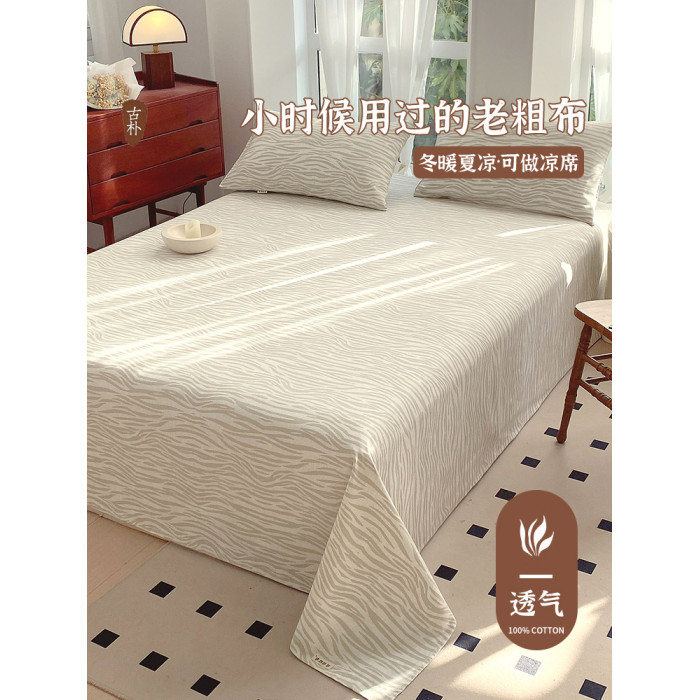 夏季老粗布床單單件純棉100全棉枕套被單三件套高級感涼蓆床笠款