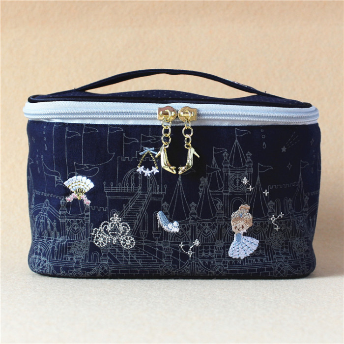 新品日本灰姑娘刺綉化妝包大容量可攜式手提化妝品整理收納包桶包