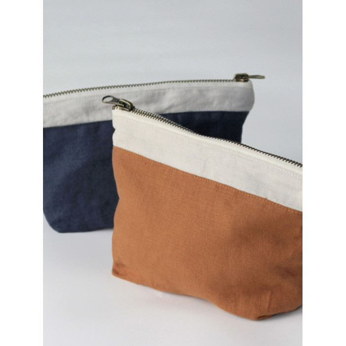 雙層拼色純亞麻化妝包 實用可攜式簡約隨身手拿包多功能旅行收納包