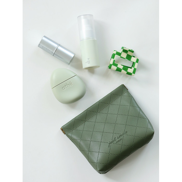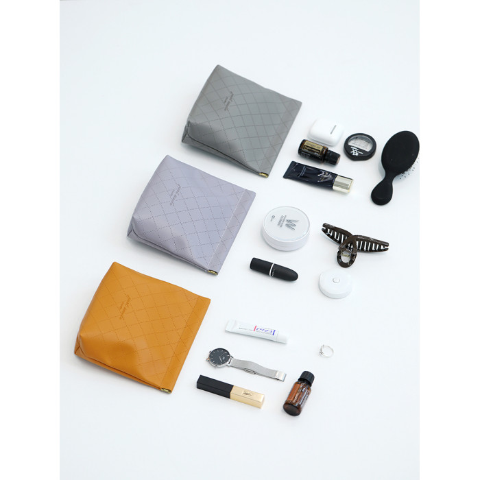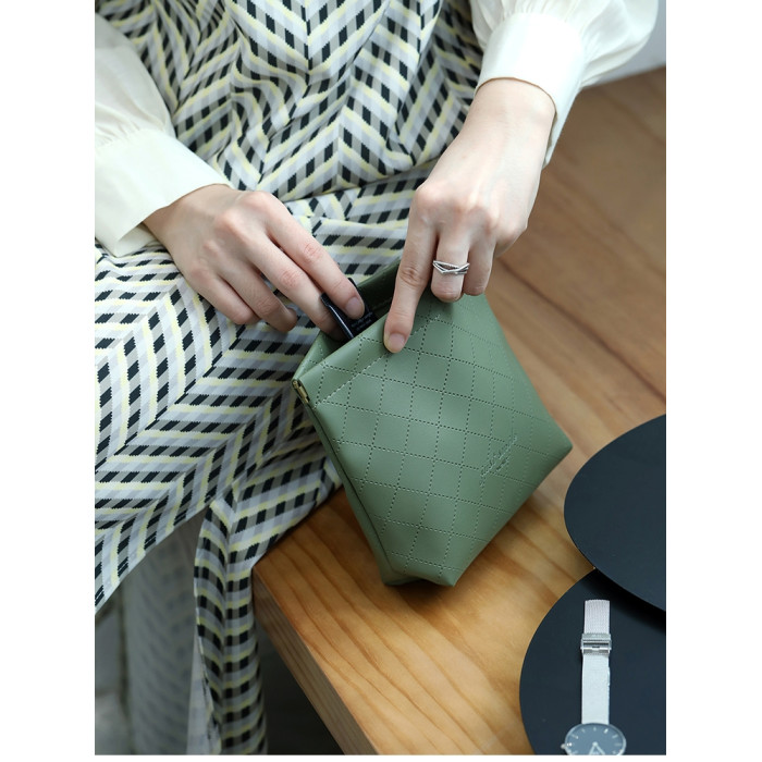 環保pu皮橫版菱格收納包購物袋內膽包襍物整理袋充電寶化妝包手包
