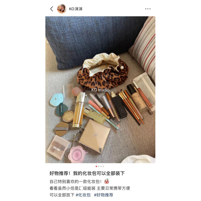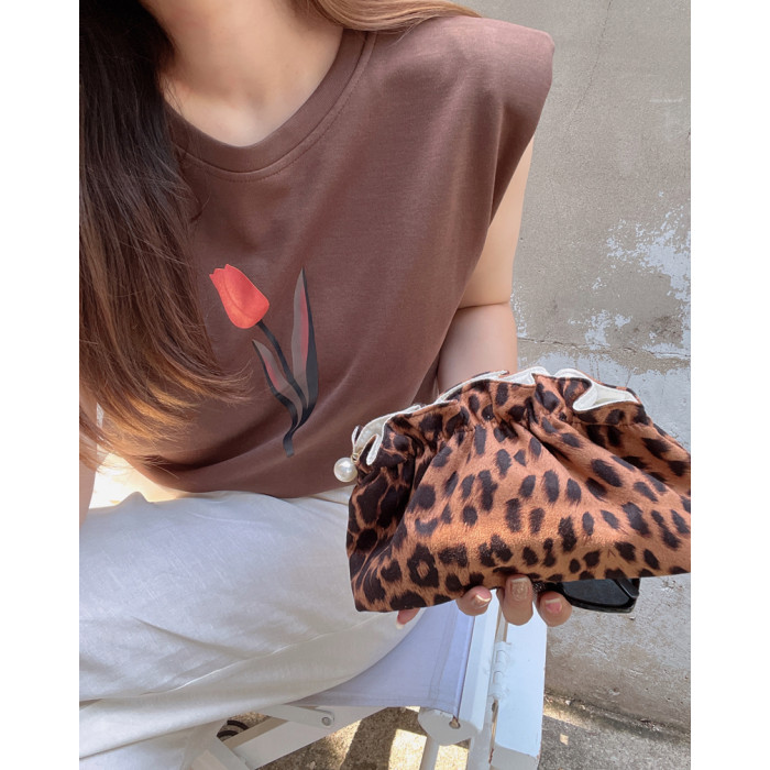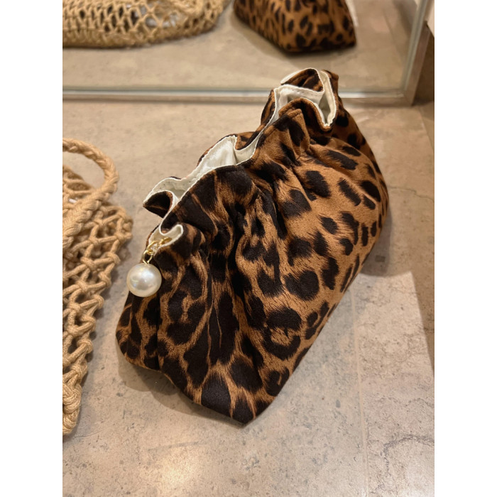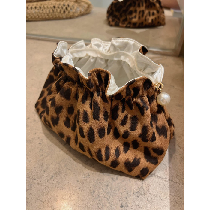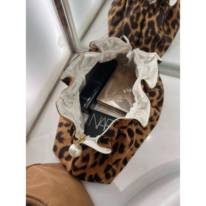 KOGIRL自製可攜式高級豹紋珍珠拉鍊花苞邊化妝包收納包韓國手拿包