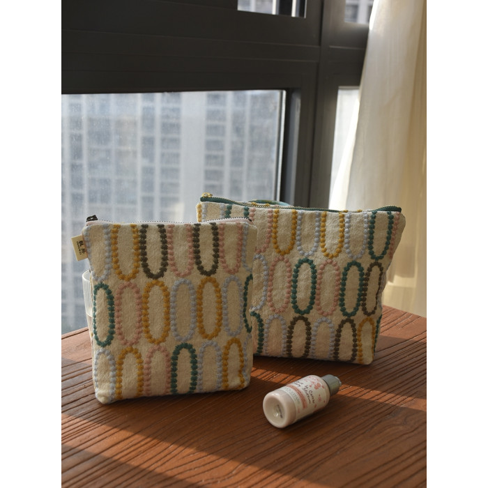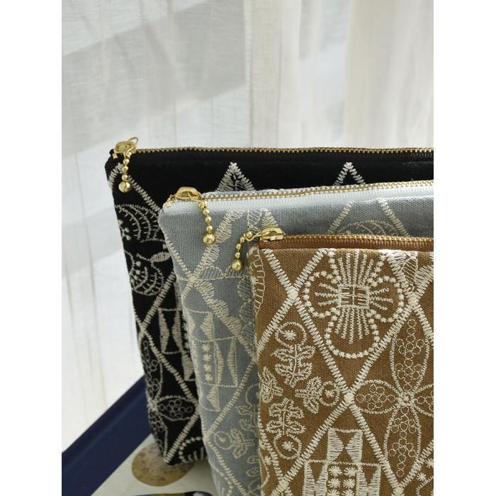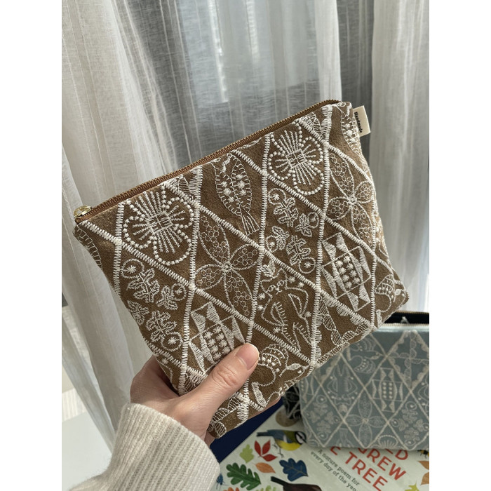 皆川明風格 化妝包布藝刺綉 大容量出差旅行收納包 女士手拿包