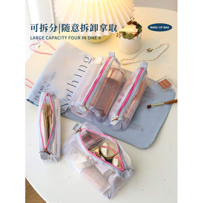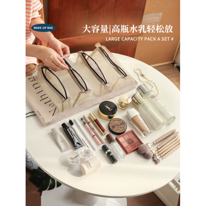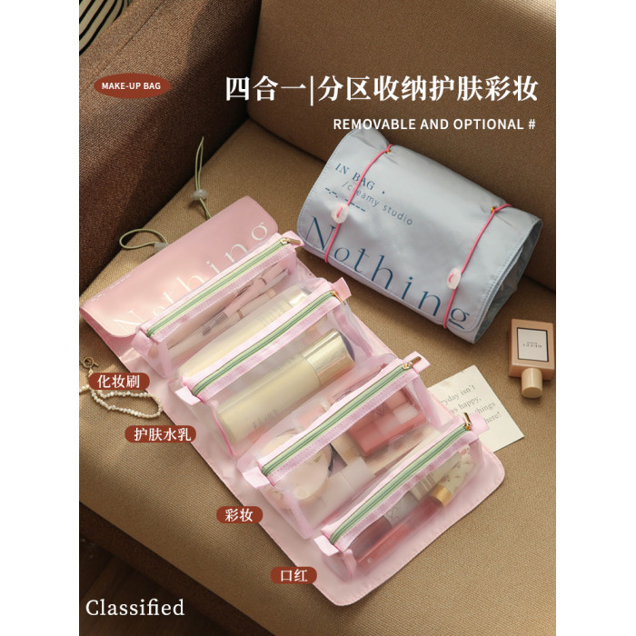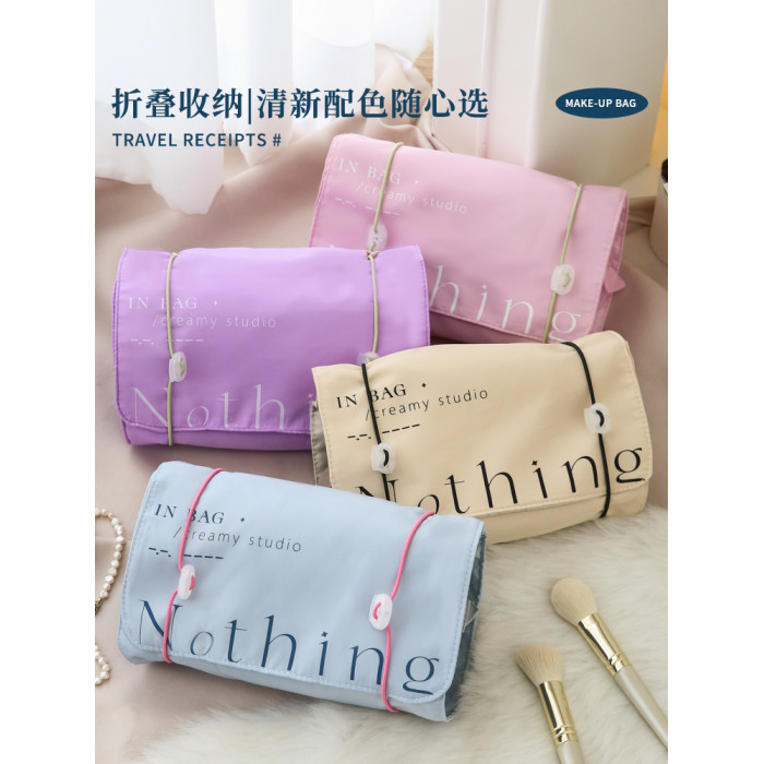 旅行化妝包簡約ins風可折曡旅遊出差撞色大容量洗漱用品收納包袋