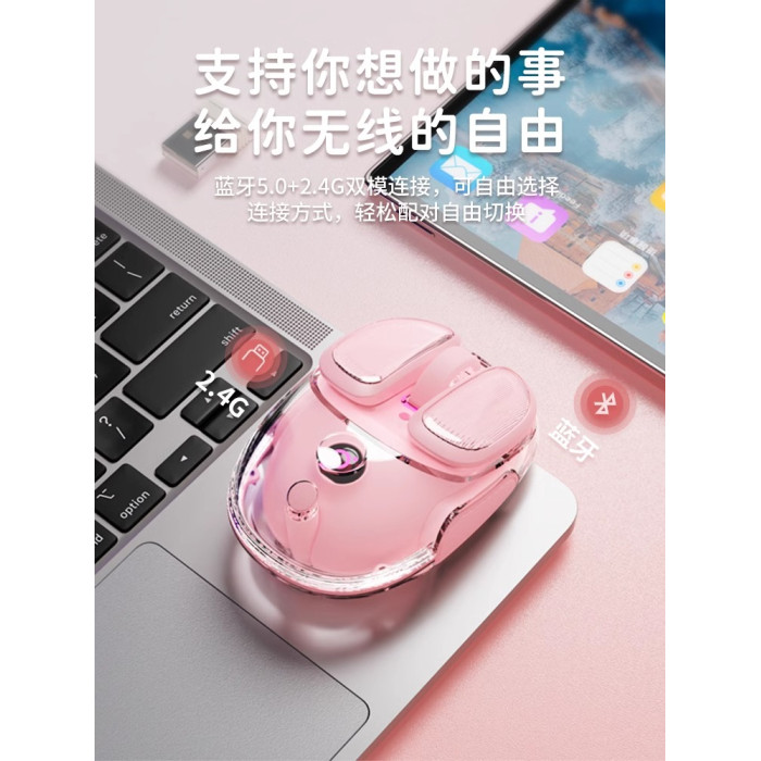 前行者Q9小土豆無線藍牙滑鼠透明粉色女生可愛高顔值靜音辦公充電