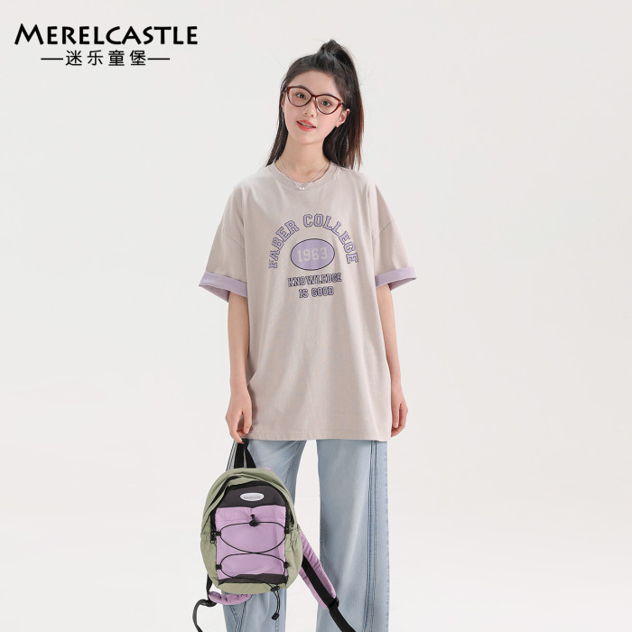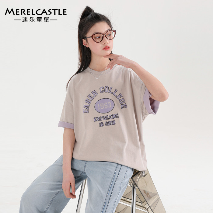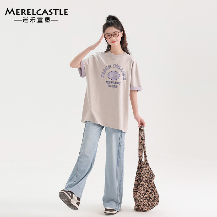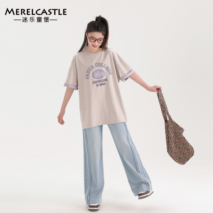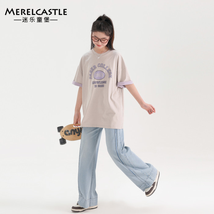 【CC家居控】T恤女童夏季寬松印花百搭潮流圓領運動簡約T恤C4776