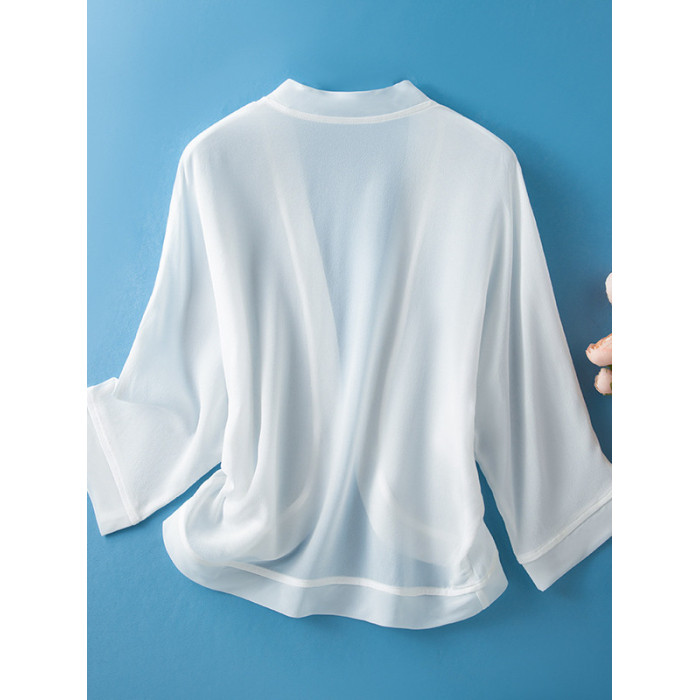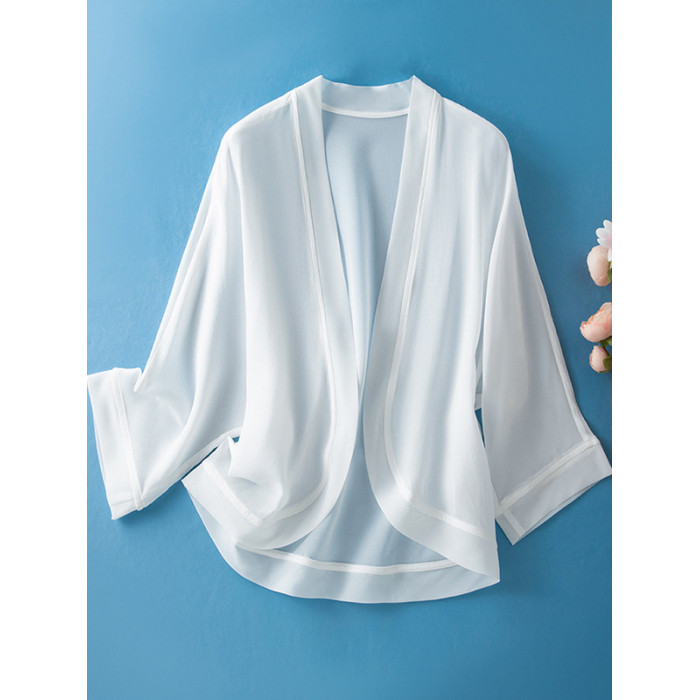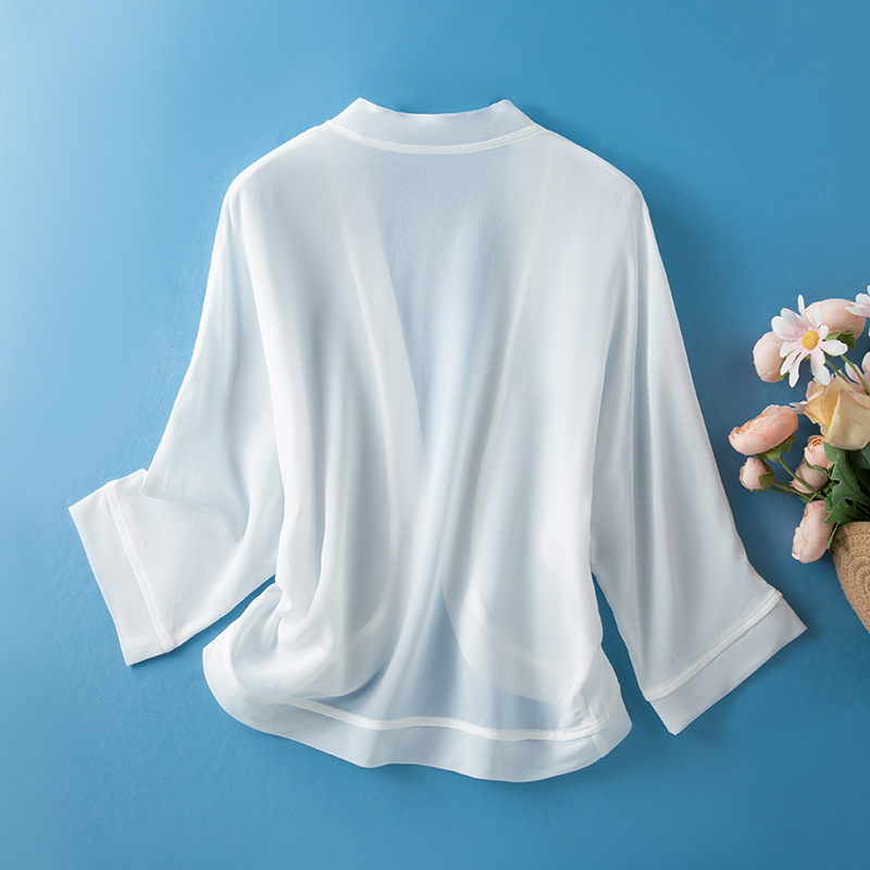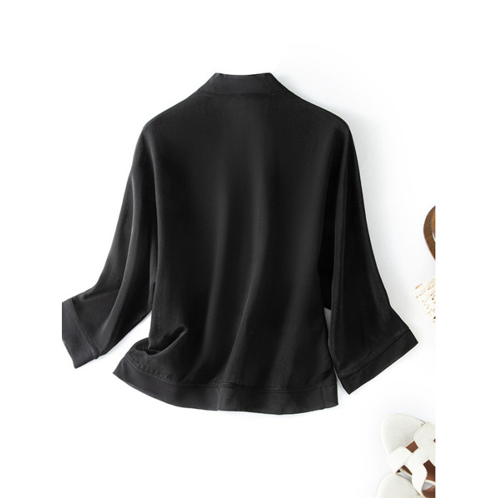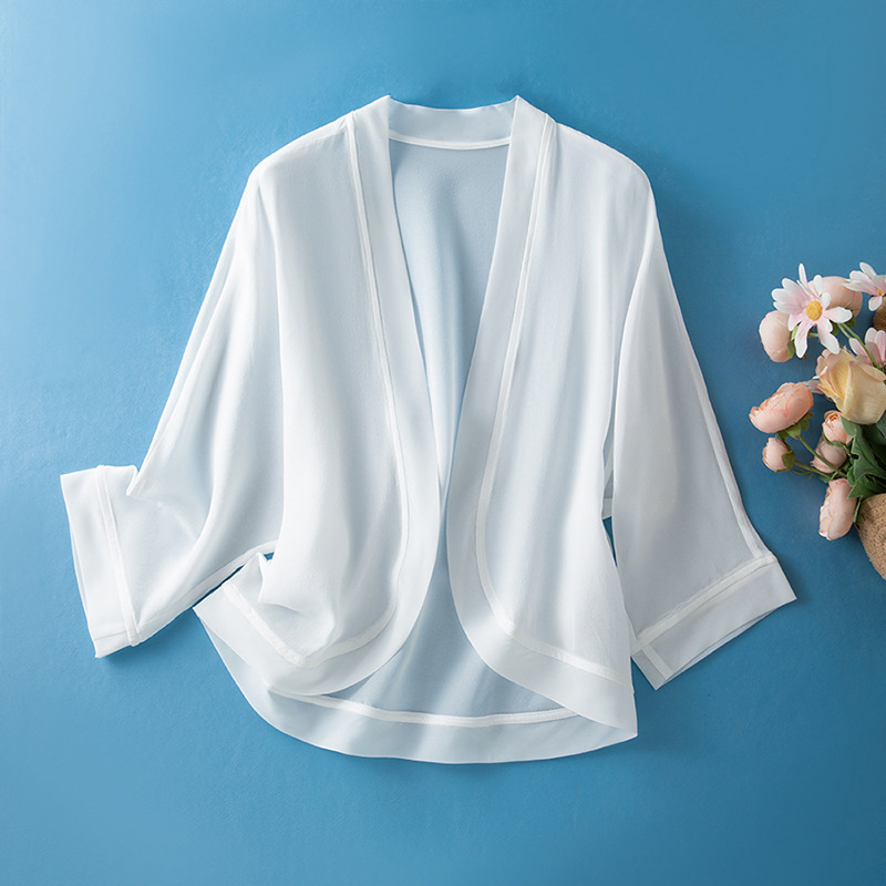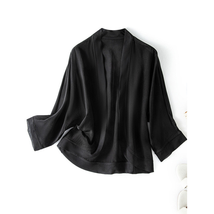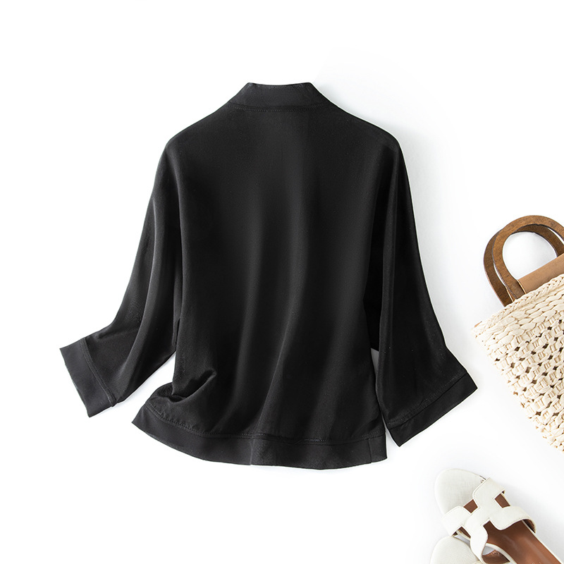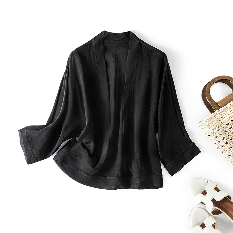 100%真絲外搭防曬衣女短款開衫外套薄款黑色桑蠶絲配裙小披肩罩衫