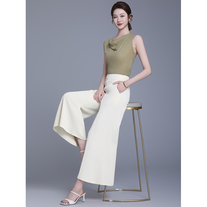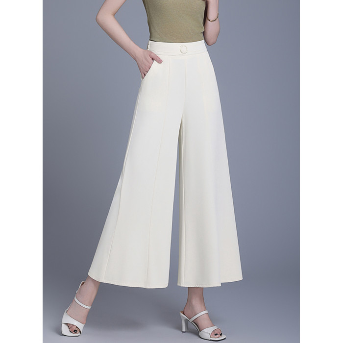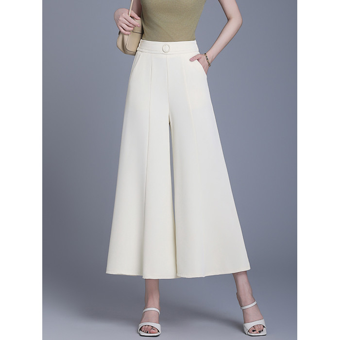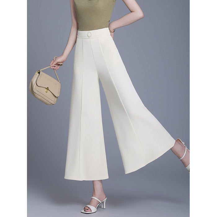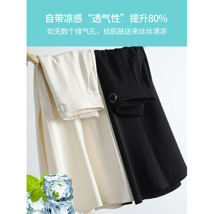 米白色裙褲女夏薄款新款大腳寬松顯瘦九分褲小個子高腰冰絲濶腿褲