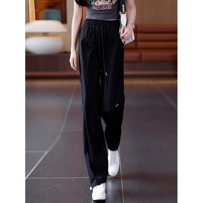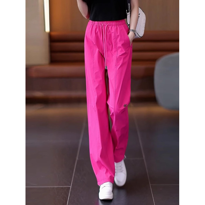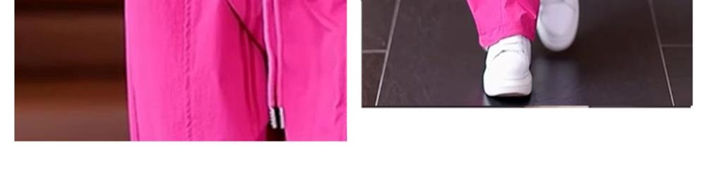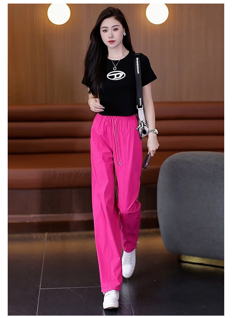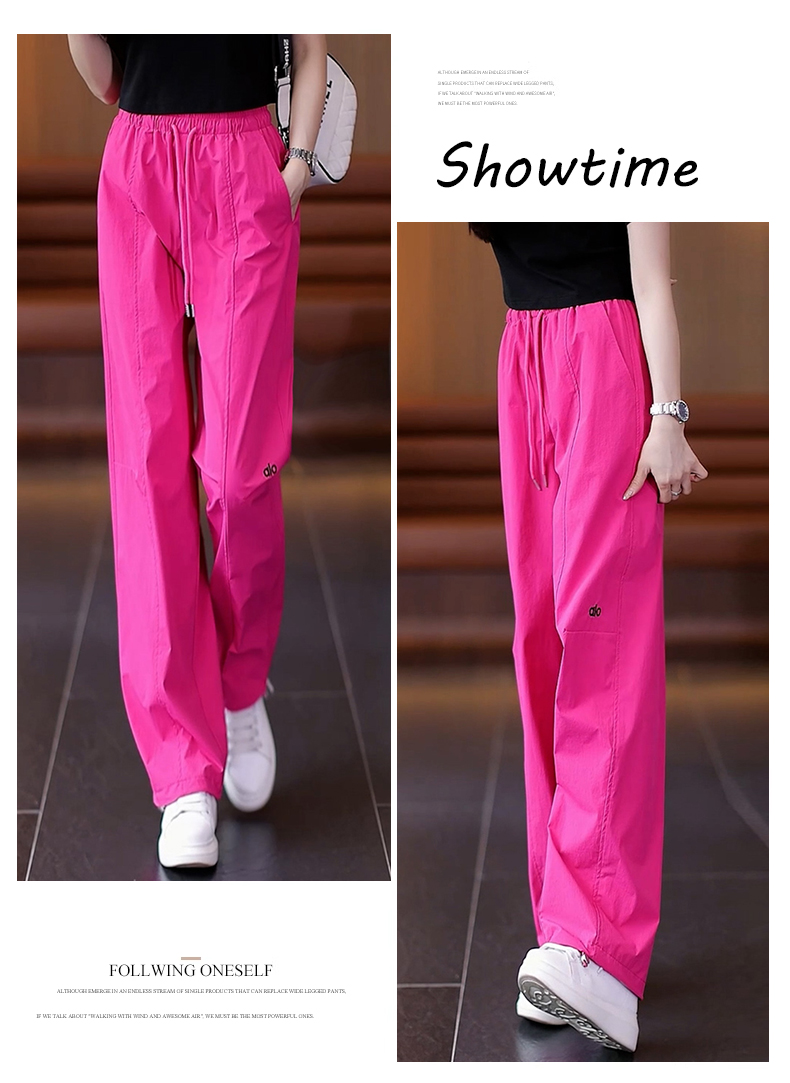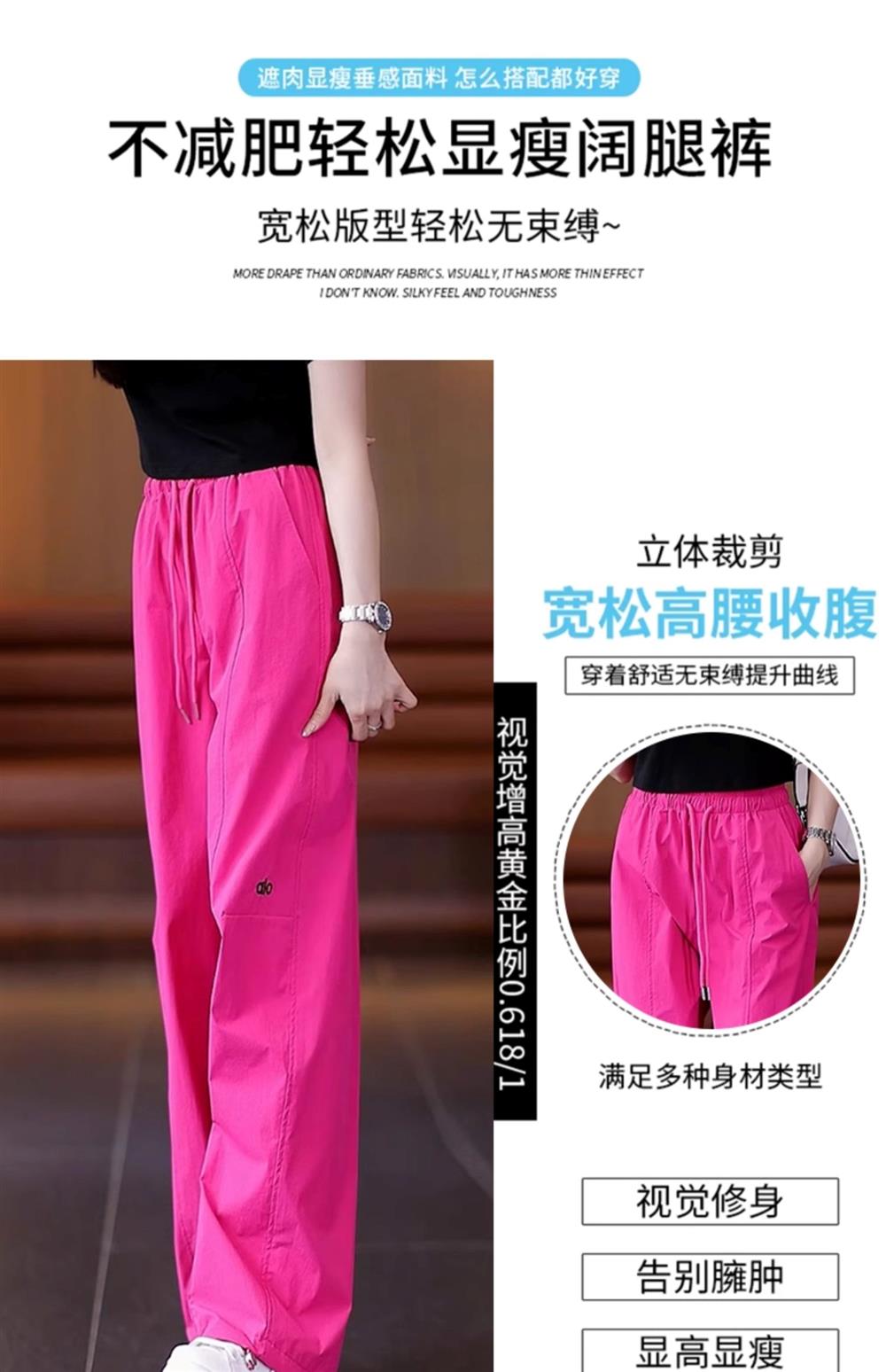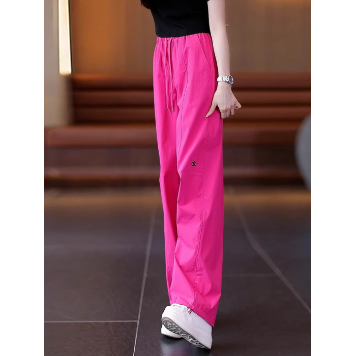 高級玫紅色工裝褲女夏季薄款寬松顯瘦垂感冰絲休閒運動速乾濶腿褲