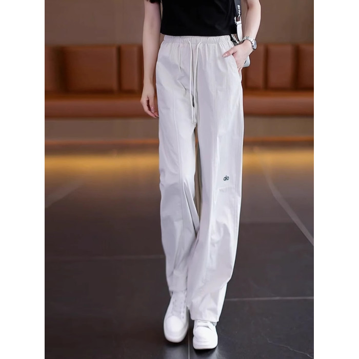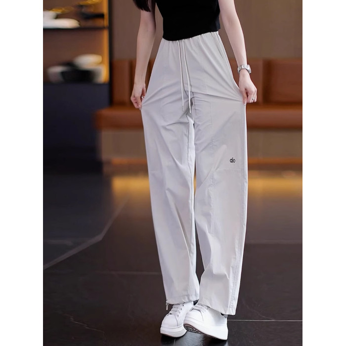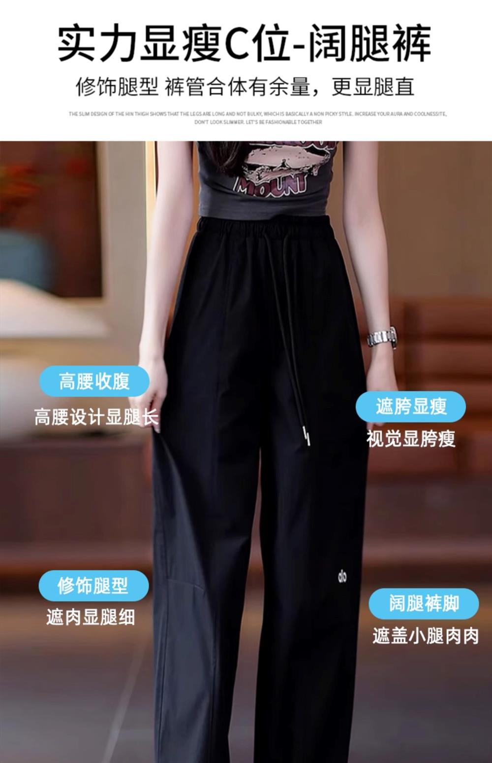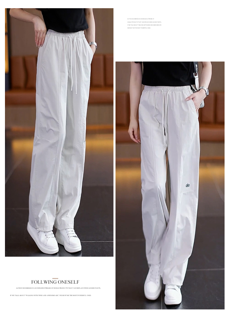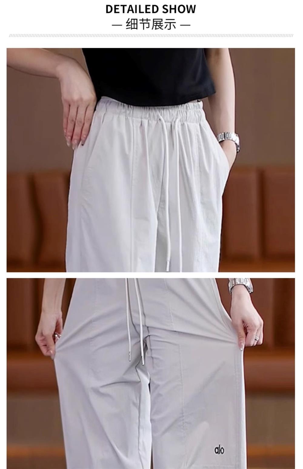 高級玫紅色工裝褲女夏季薄款寬松顯瘦垂感冰絲休閒運動速乾濶腿褲