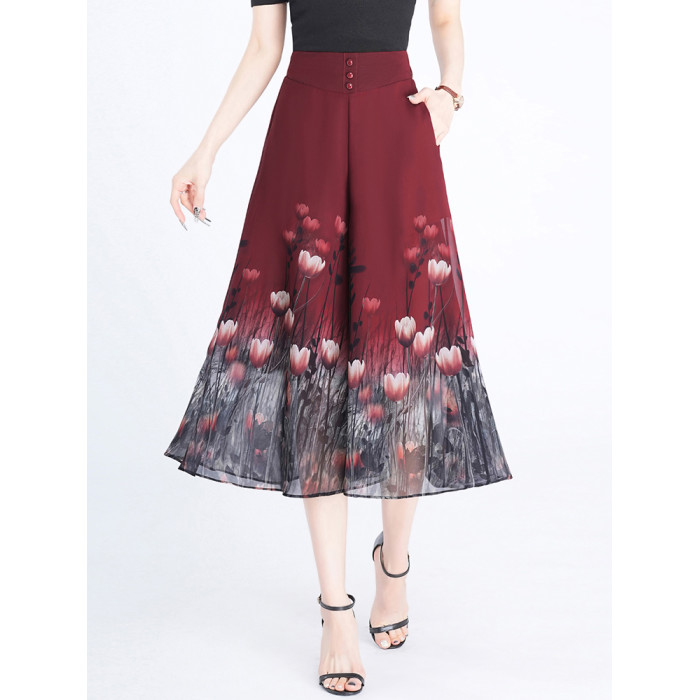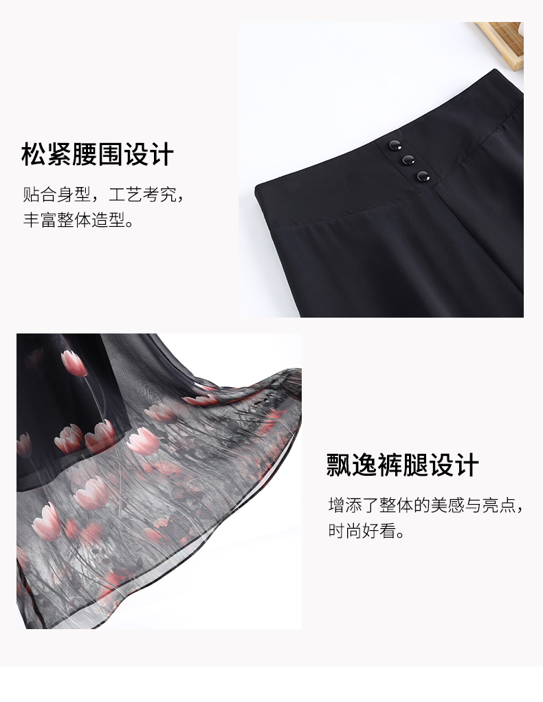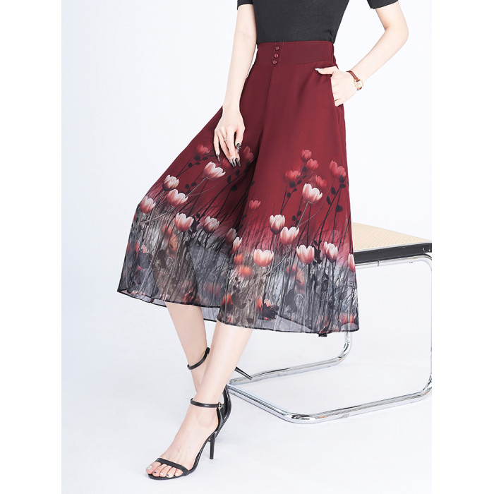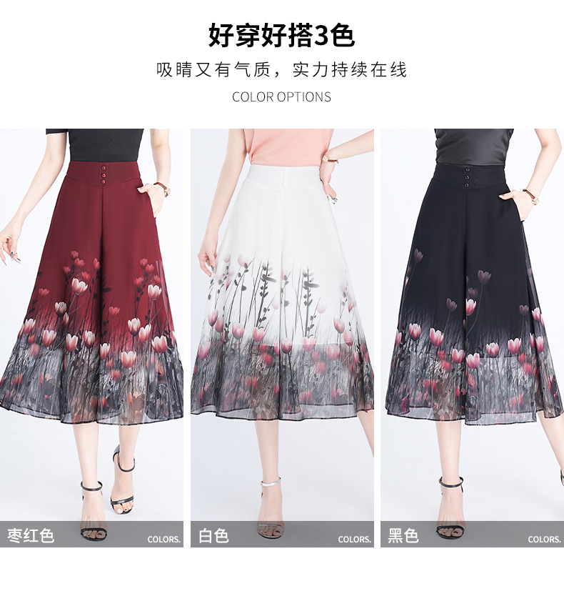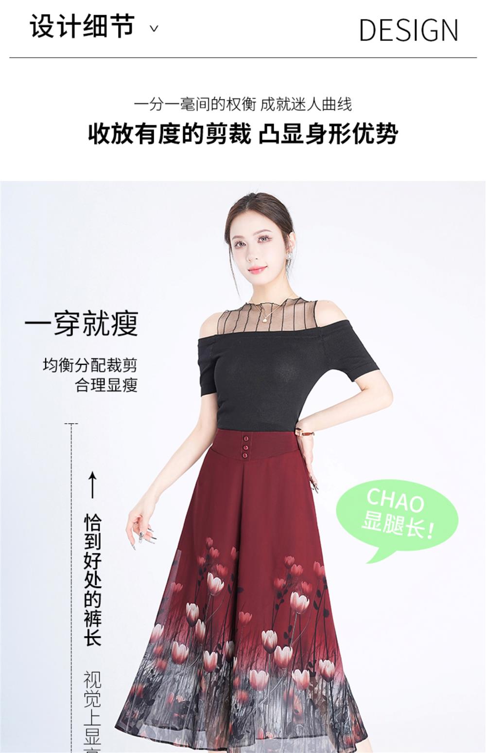 七分褲女夏季薄款印花新中式國風褲子高腰裙褲寬松垂感雪紡濶腿褲