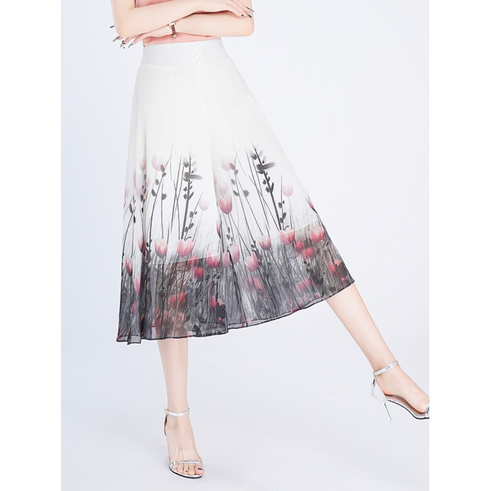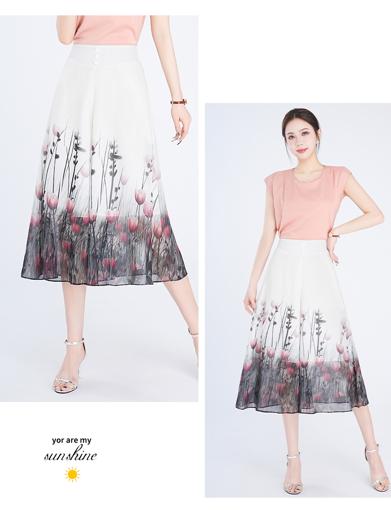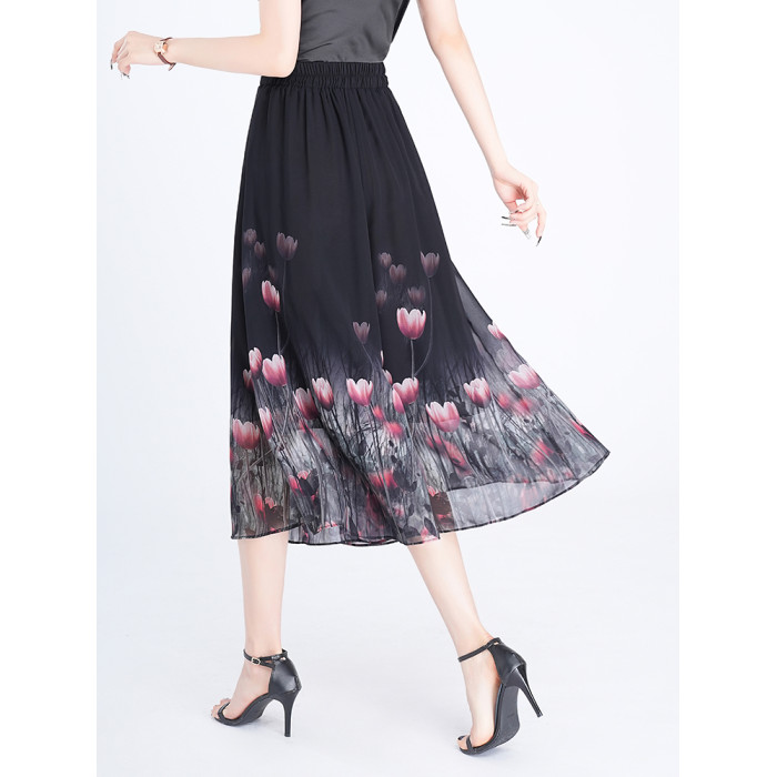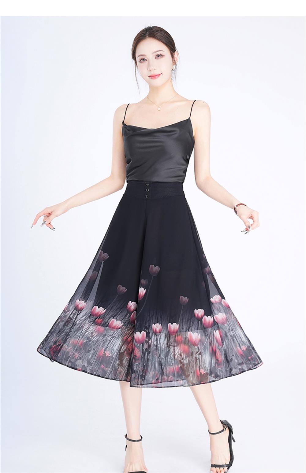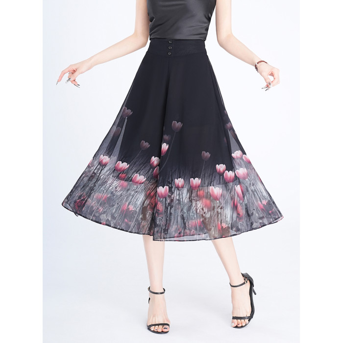 七分褲女夏季薄款印花新中式國風褲子高腰裙褲寬松垂感雪紡濶腿褲