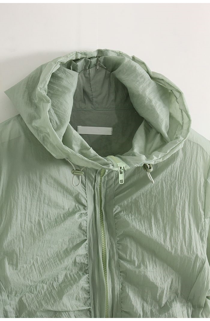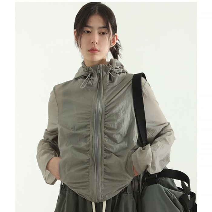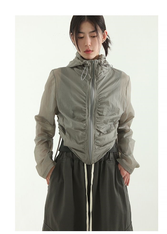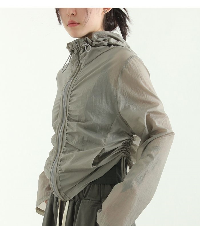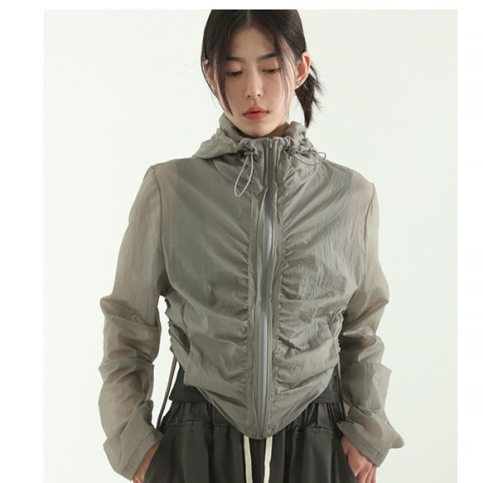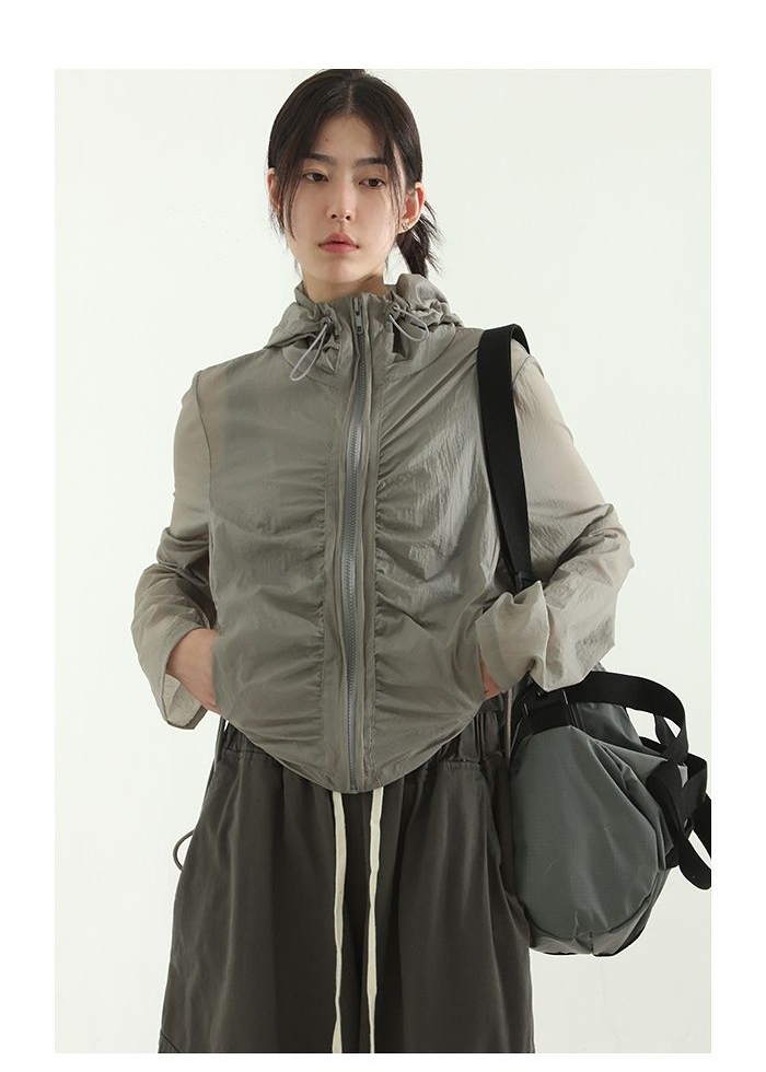 2025夏季新款顯瘦時尚洋氣褶皺小衆外套舒適清涼舒適連帽防曬衣女