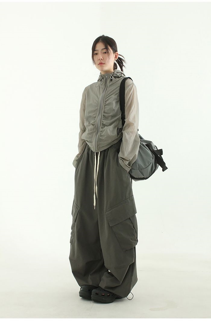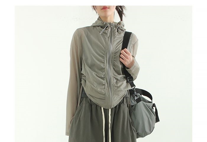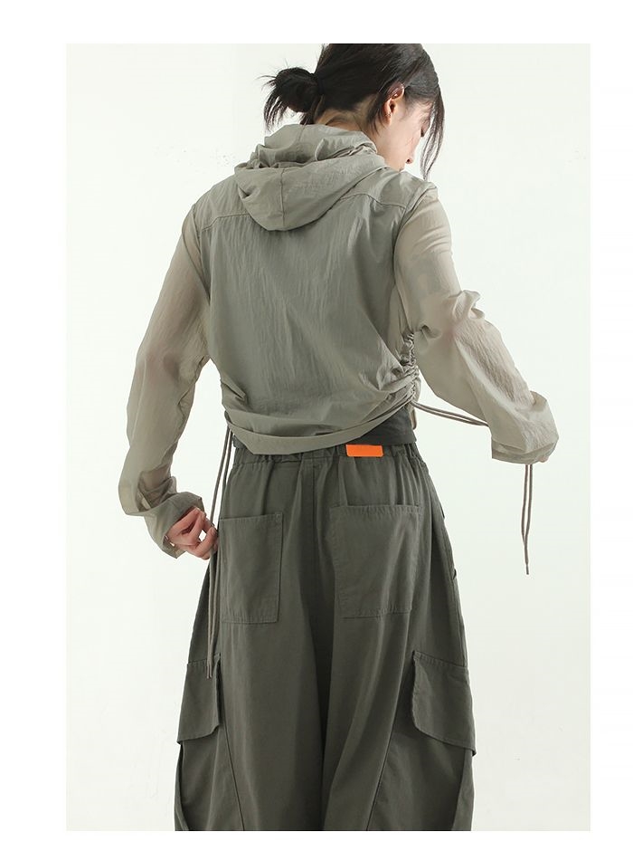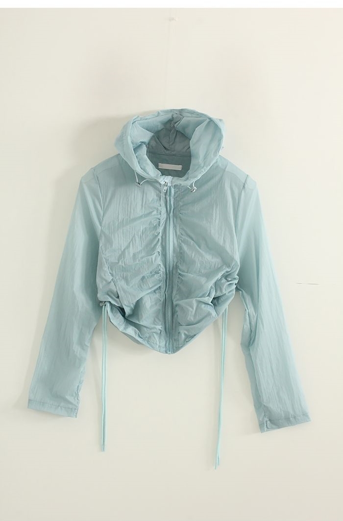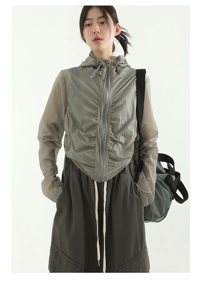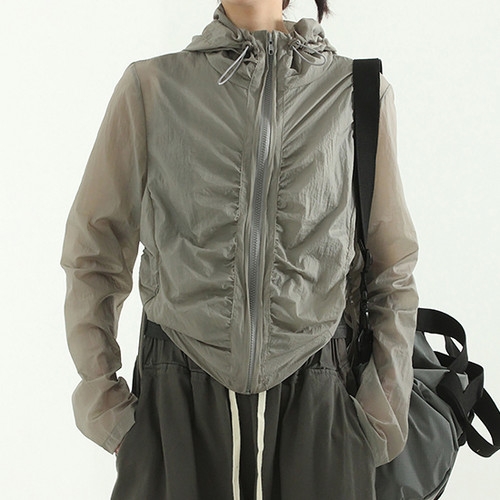 2025夏季新款顯瘦時尚洋氣褶皺小衆外套舒適清涼舒適連帽防曬衣女