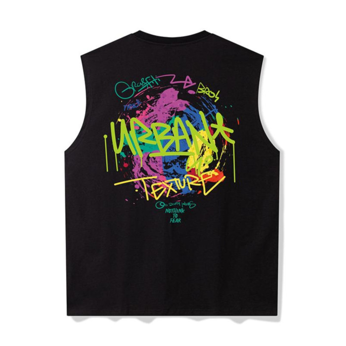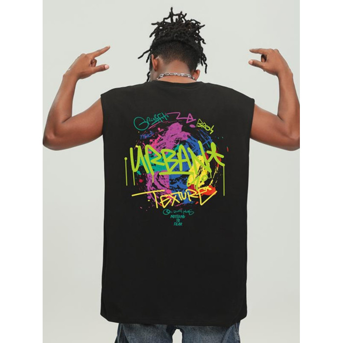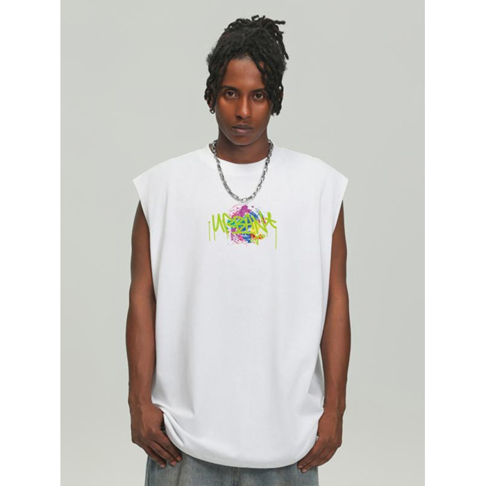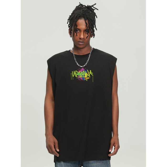 2025嘻哈寬松夏季潮流寬肩背心男士大碼街頭坎肩沙灘無袖t恤港風