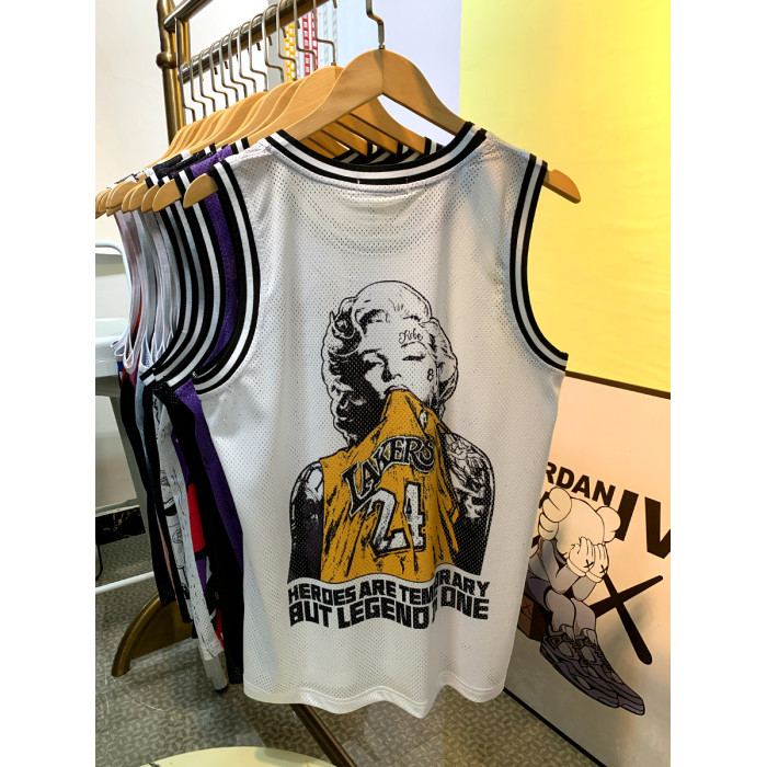 紀念致敬24號美式夢娜背心寬松籃球服健身訓練服運動無袖網眼網孔