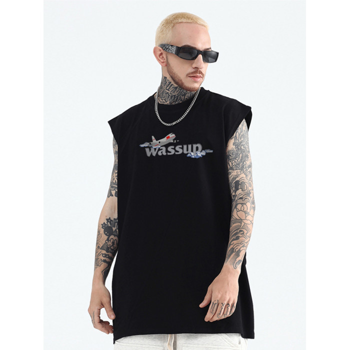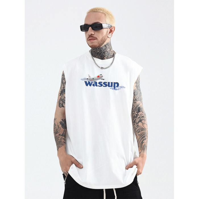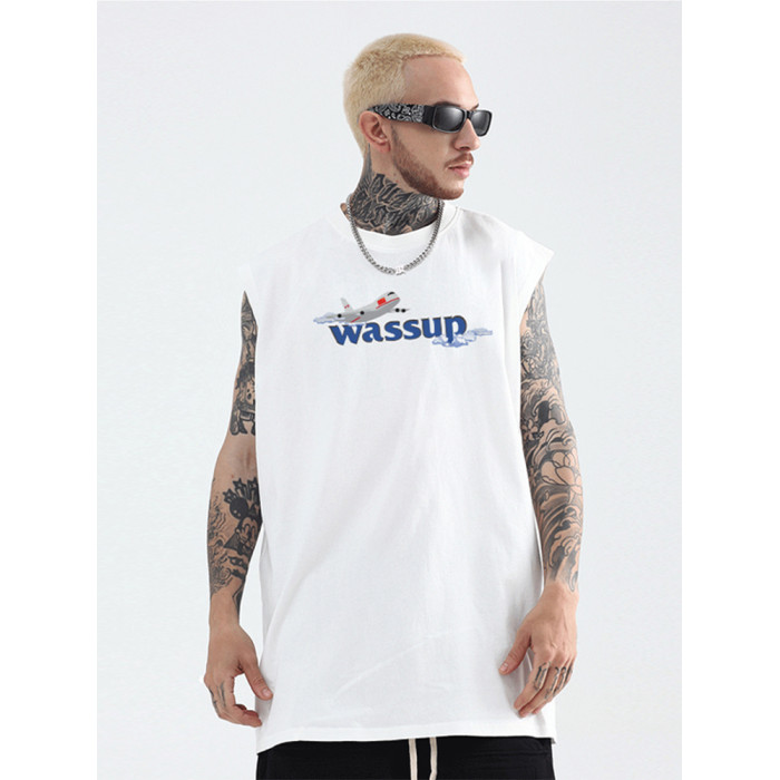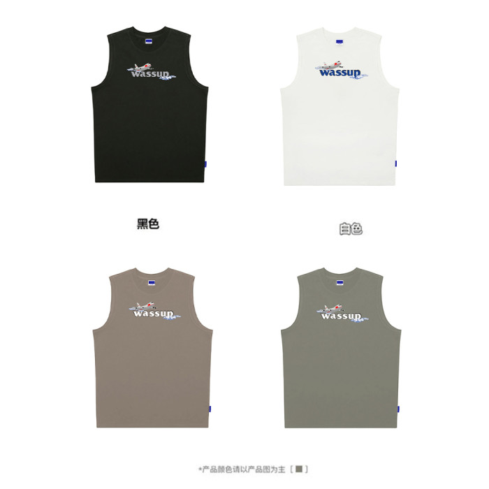 WASSUP HEODS夏季純色背心男士潮牌短袖寬松圓領t恤百搭運動坎肩