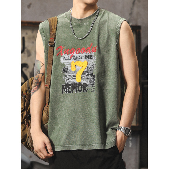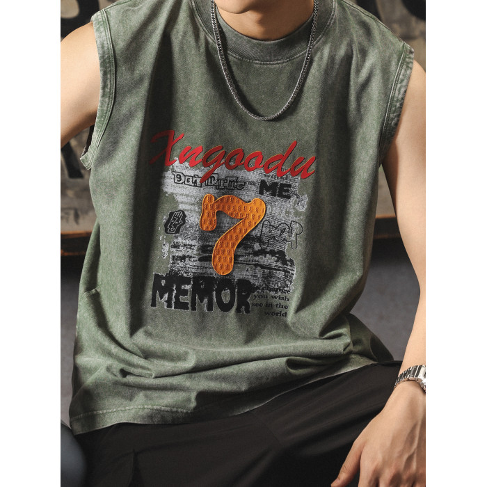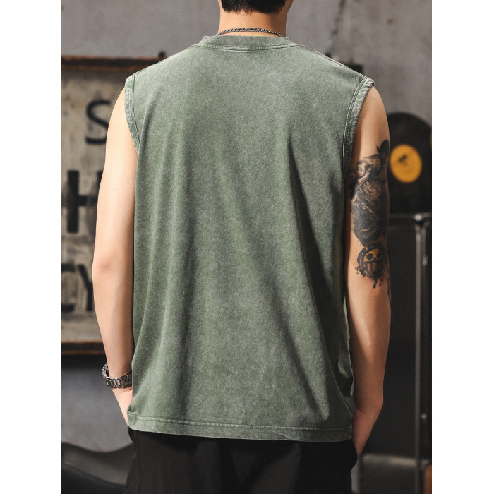 美式水洗純棉背心男2025新款潮牌寬松慵懶風運動跑步坎肩男士