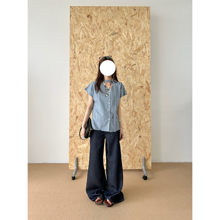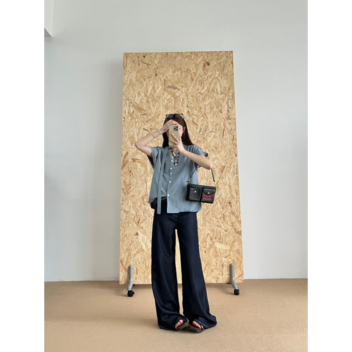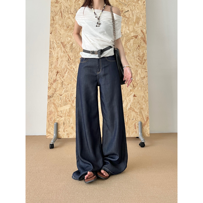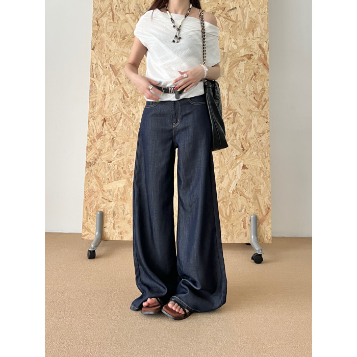 fuccykee深藍色牛仔褲女春季新款復古直筒濶腿褲寬松長褲拖地褲子