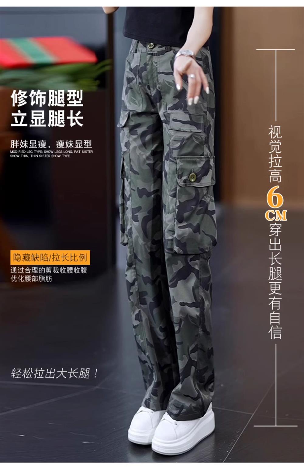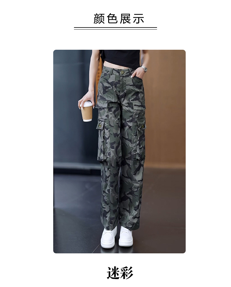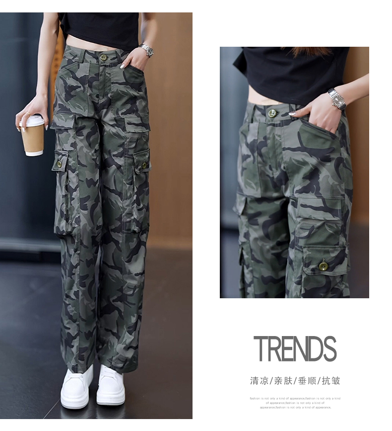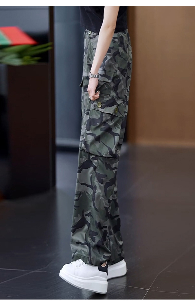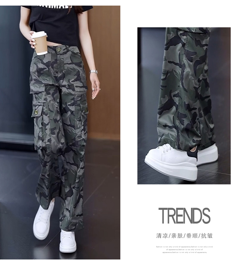 高級迷彩工裝褲女夏涼感高腰寬松垂感顯瘦休閒百搭運動直筒濶腿褲