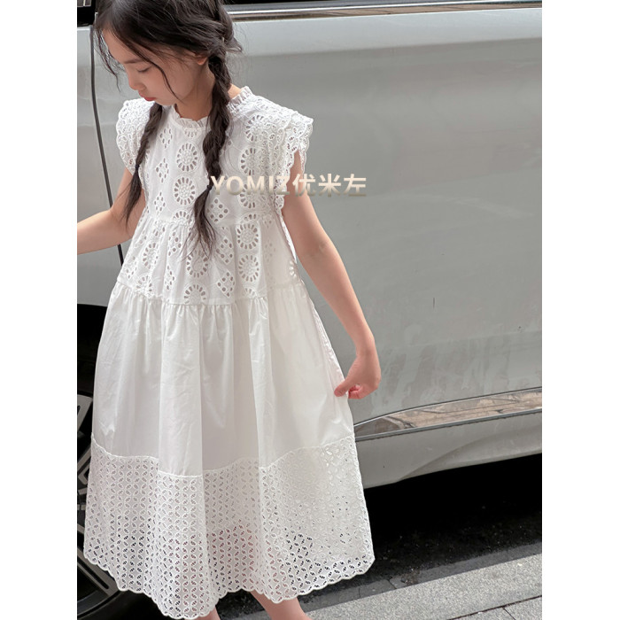 波拉bora韓國童裝甜美氣質女童蕾絲公主裙2025夏季洋氣女童連衣裙