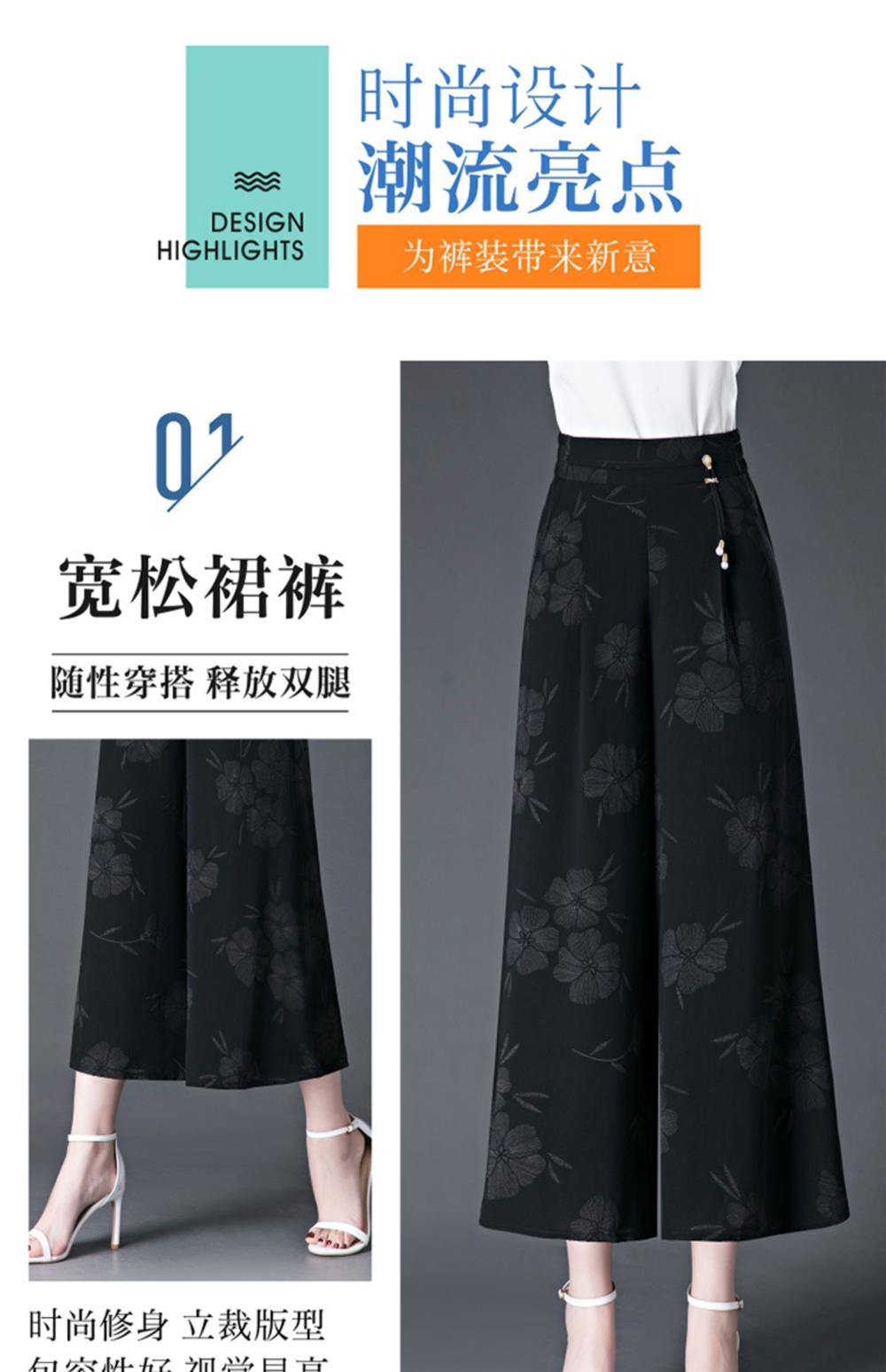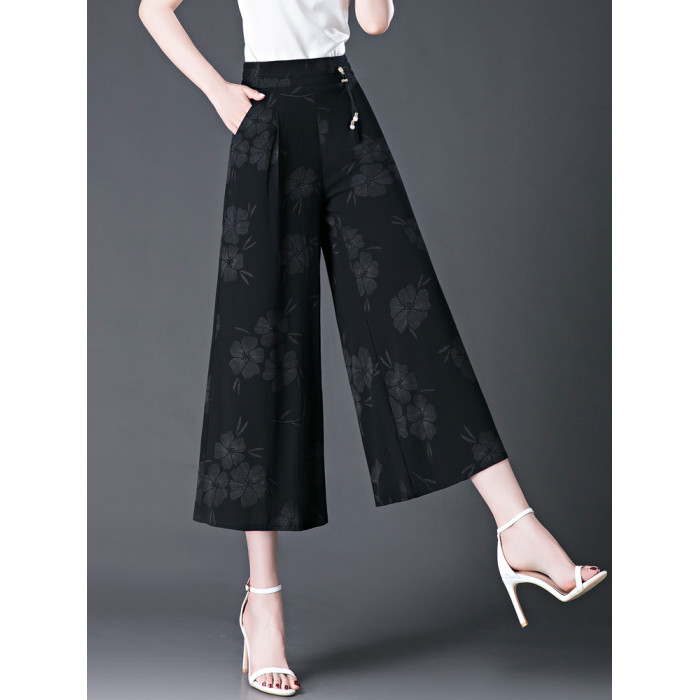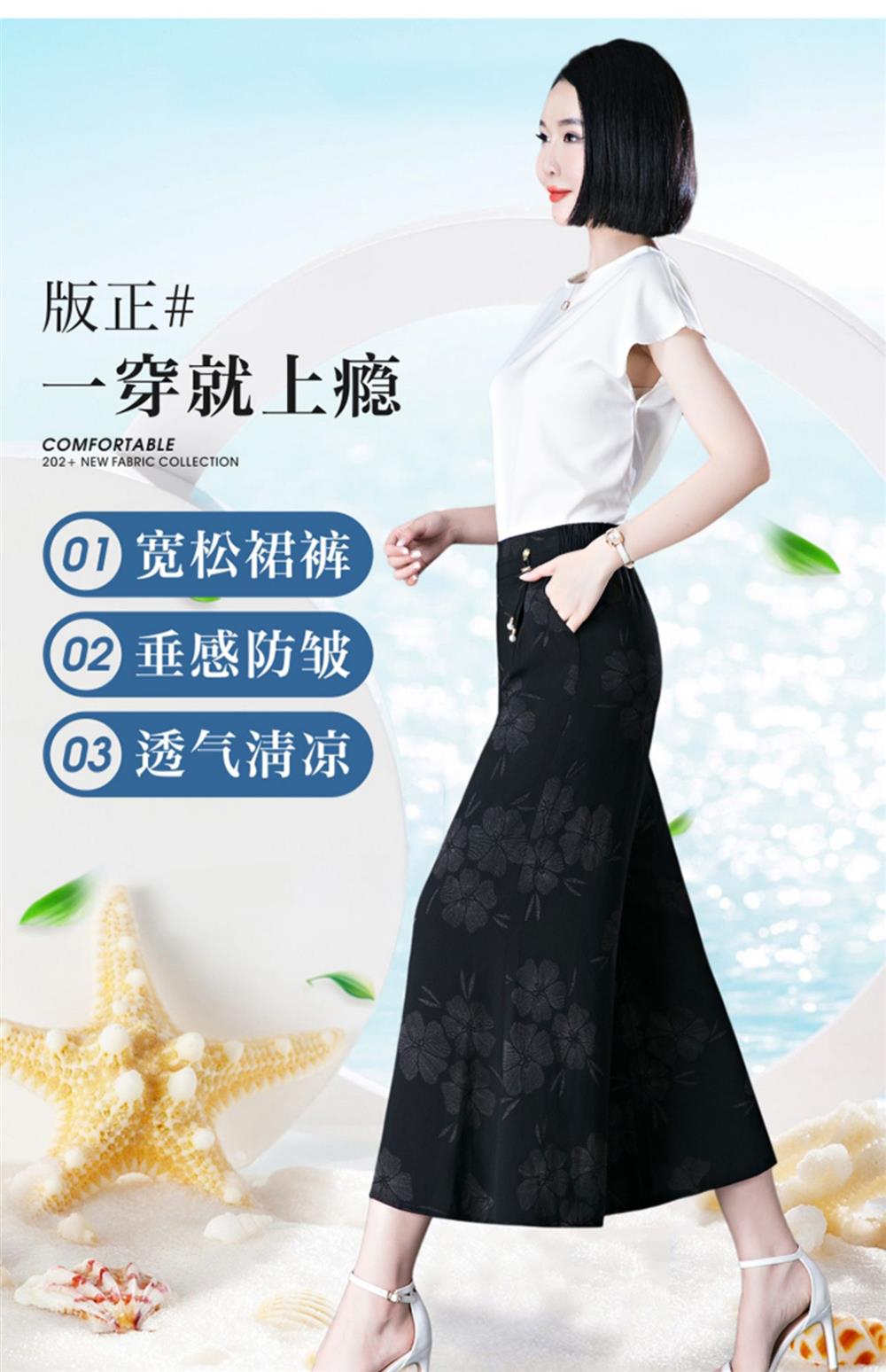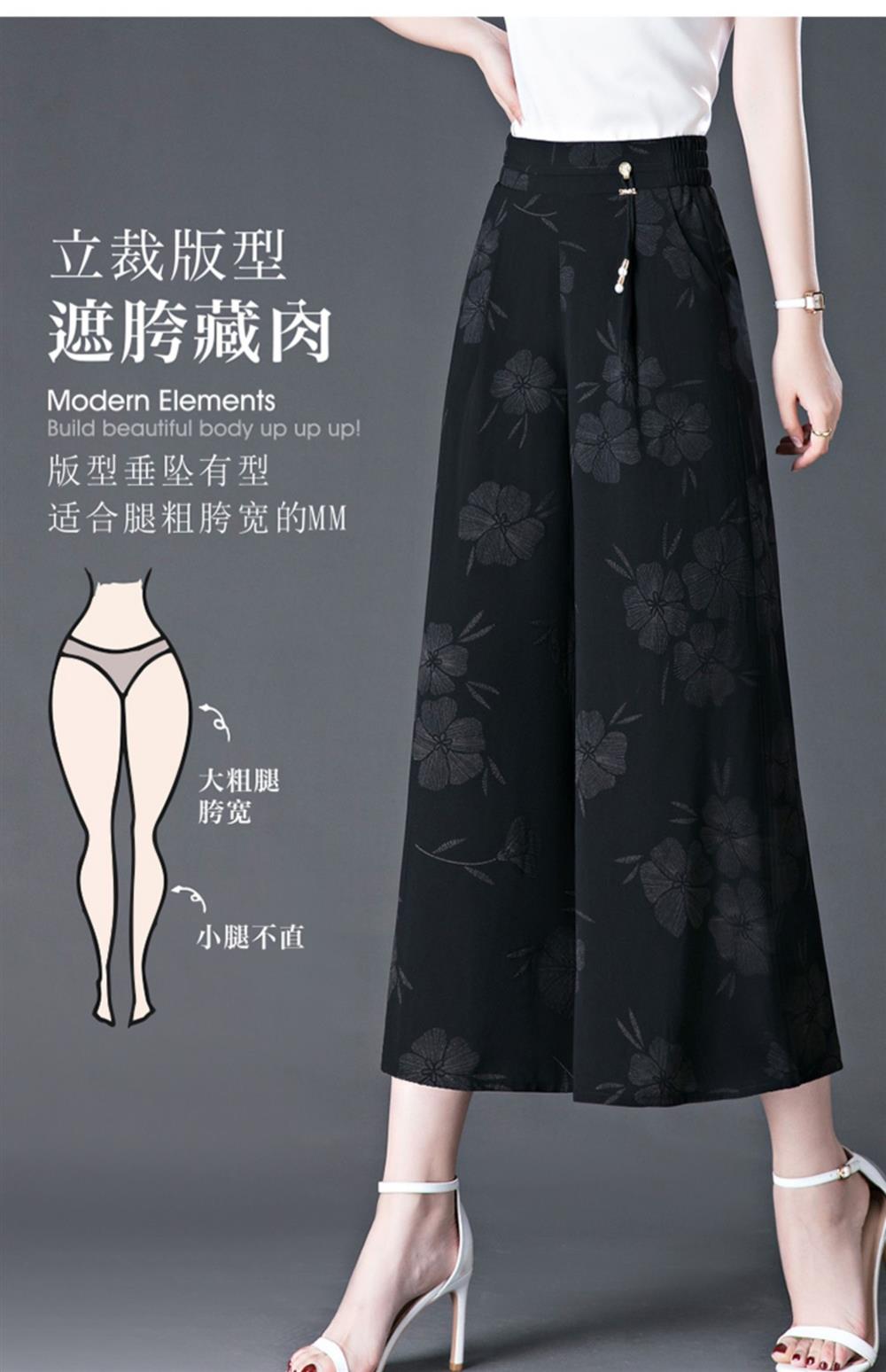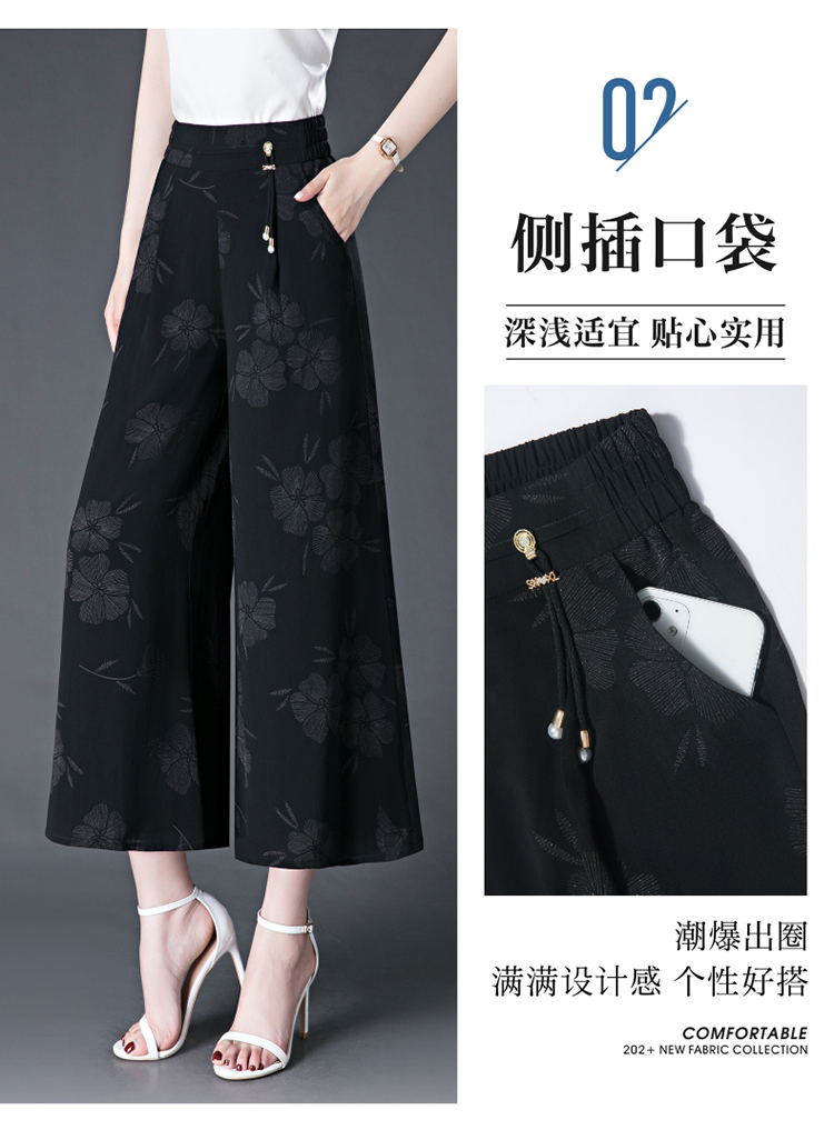 隅見丨濶腿褲女2025夏季薄款高腰垂感中長款印花大腳褲八分褲裙褲