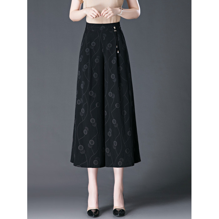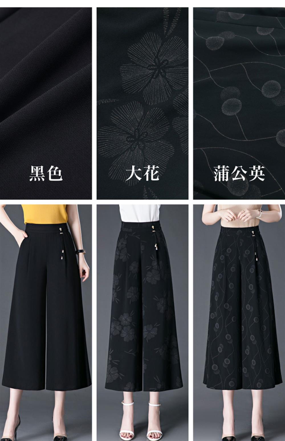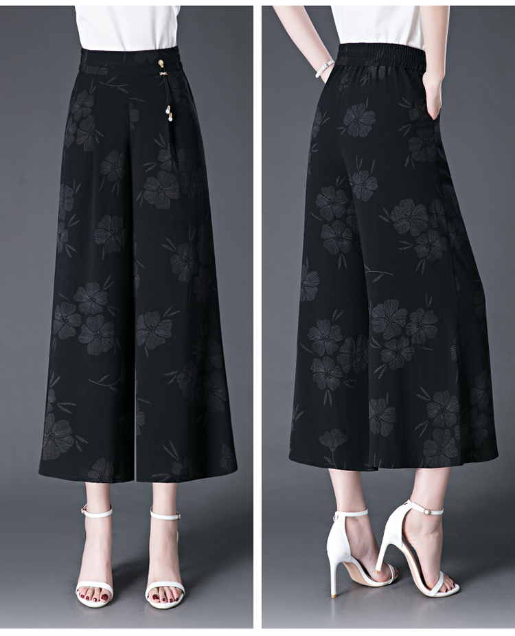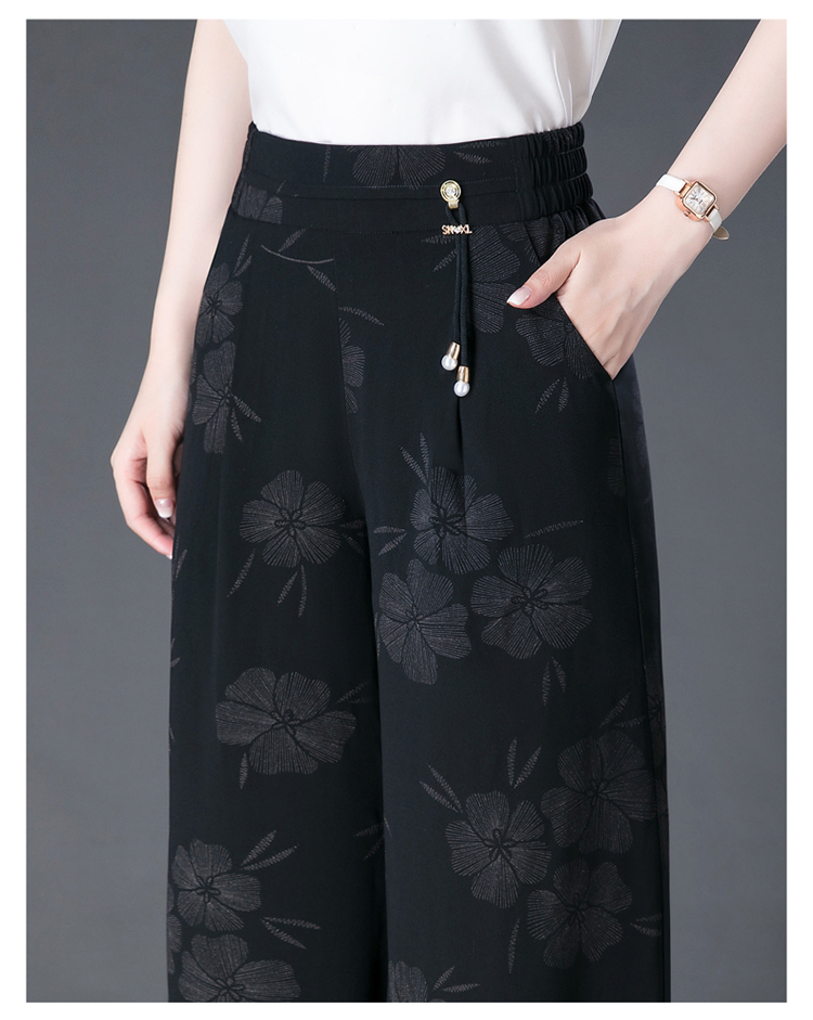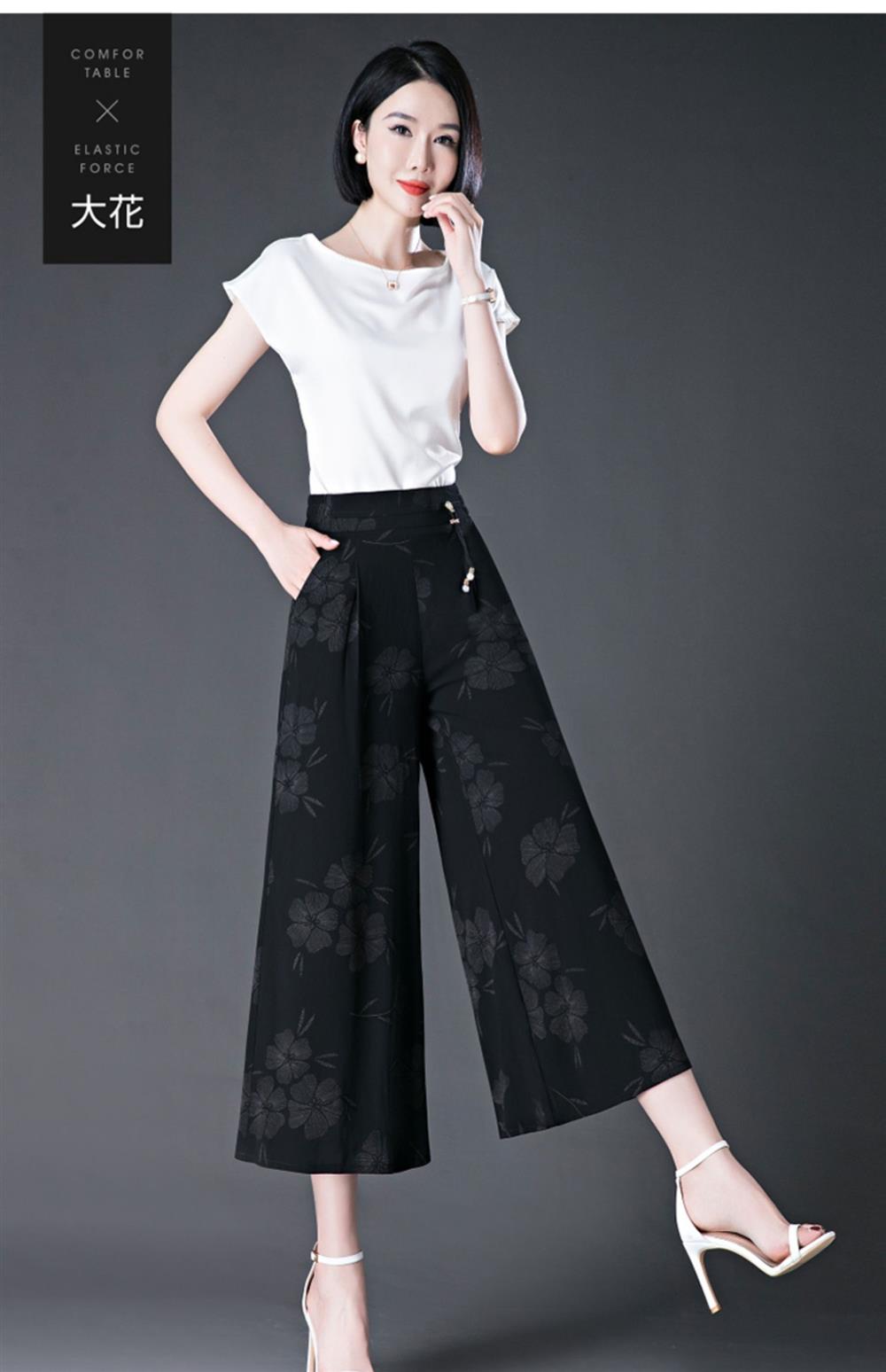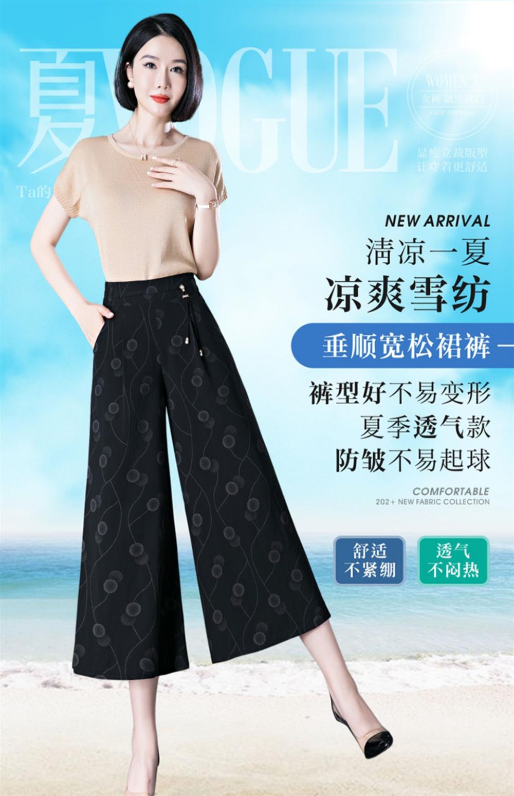 隅見丨濶腿褲女2025夏季薄款高腰垂感中長款印花大腳褲八分褲裙褲
