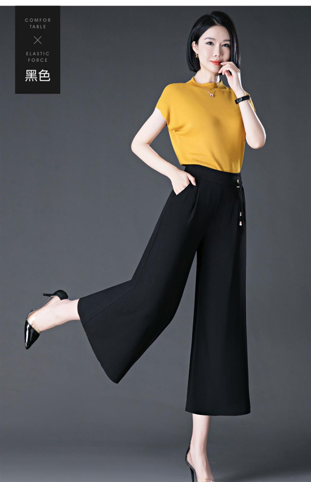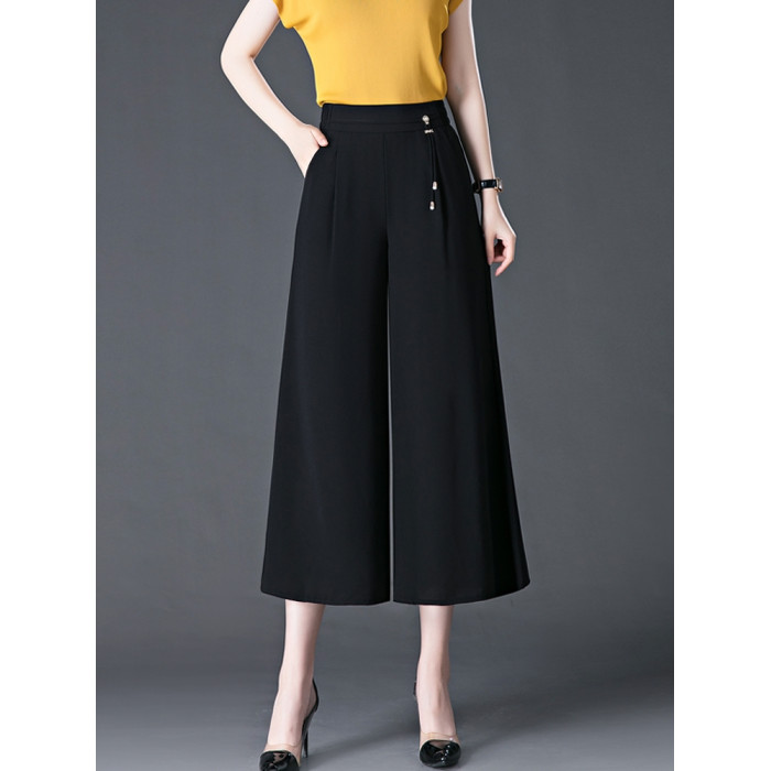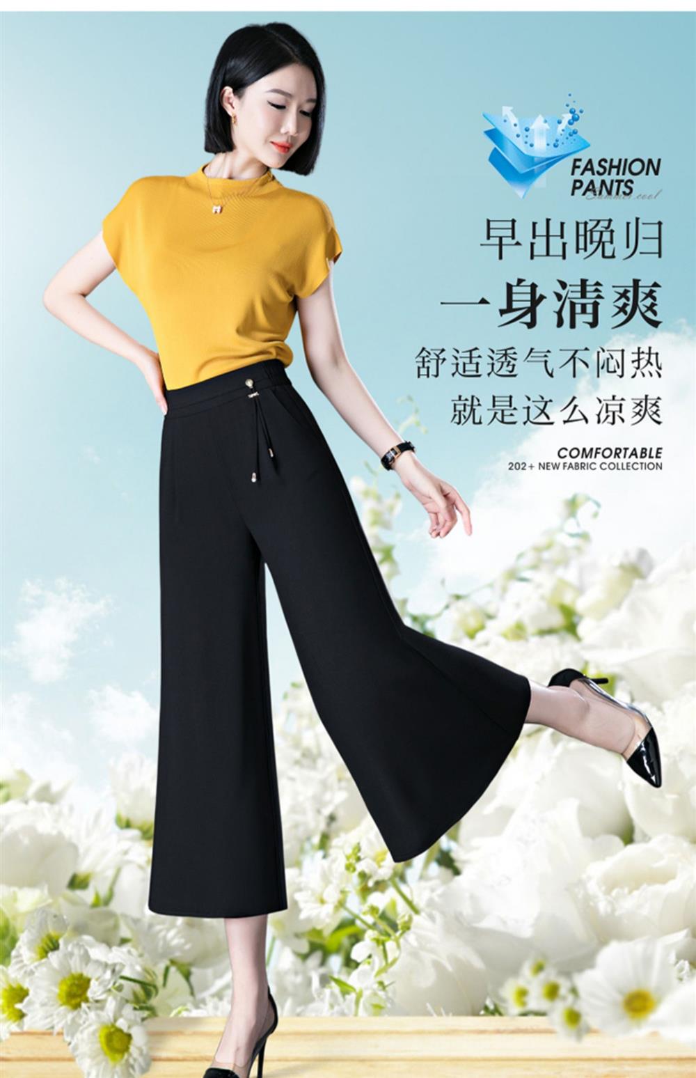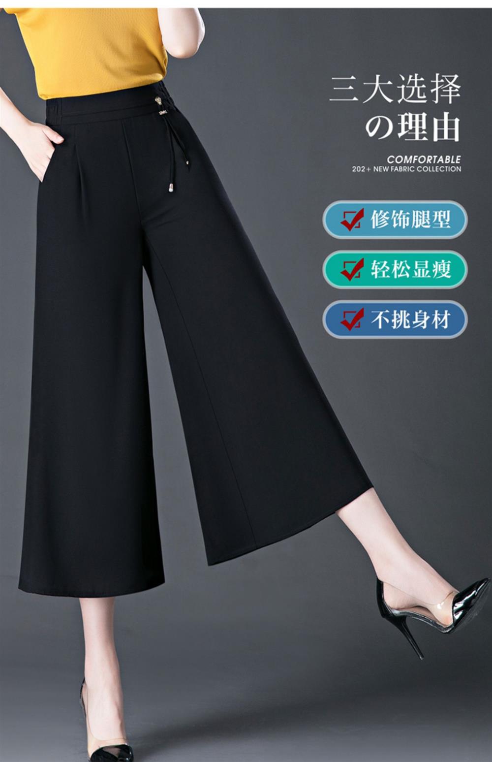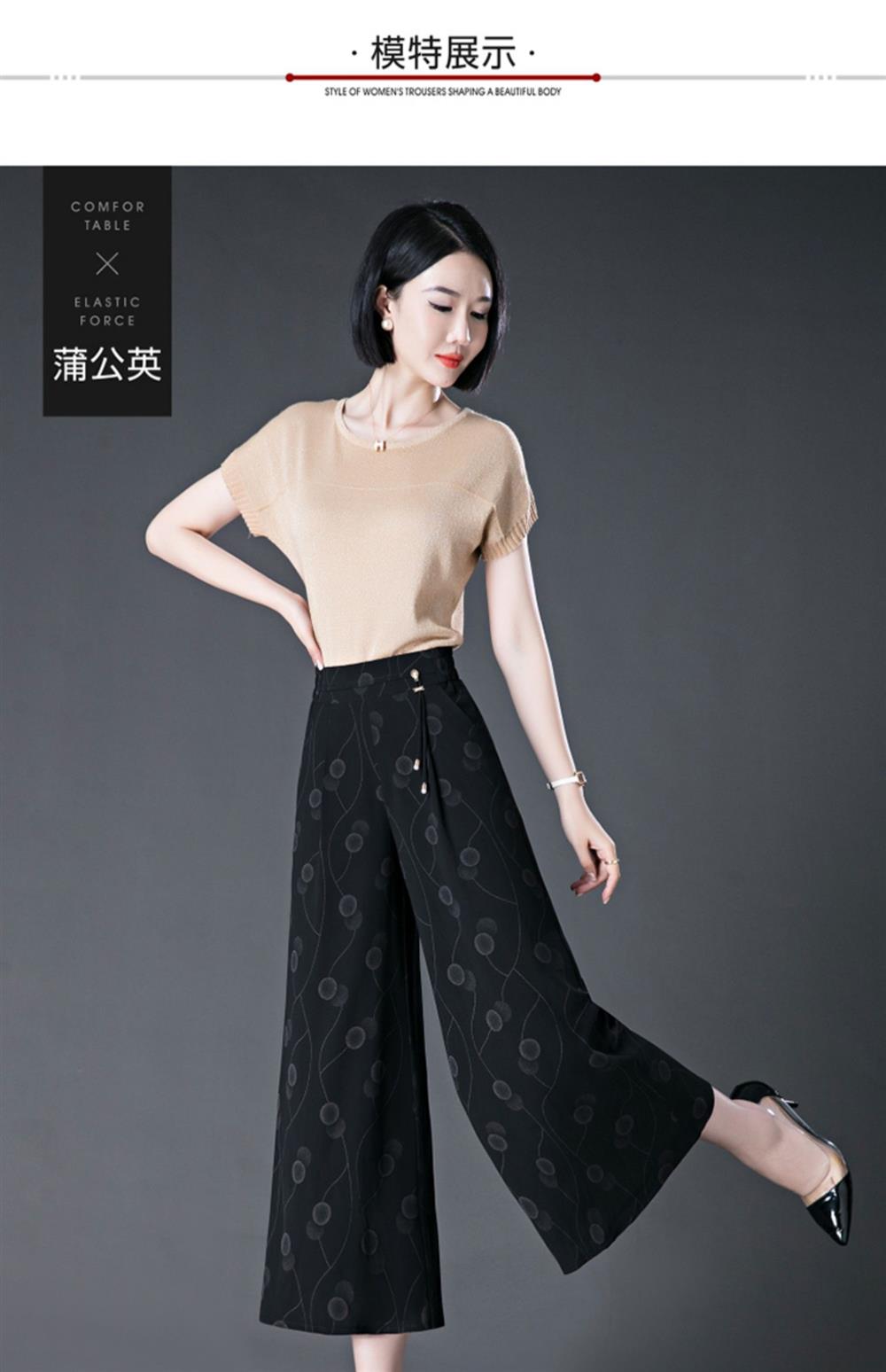 隅見丨濶腿褲女2025夏季薄款高腰垂感中長款印花大腳褲八分褲裙褲
