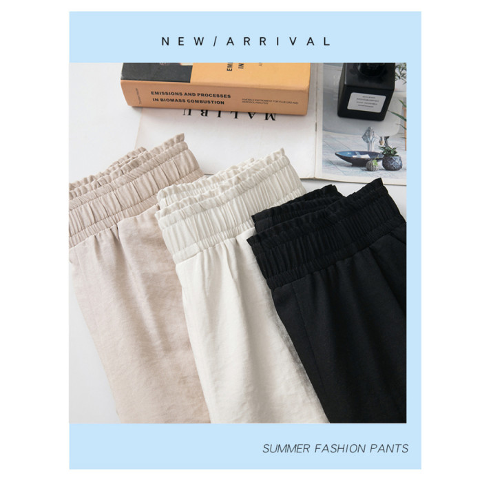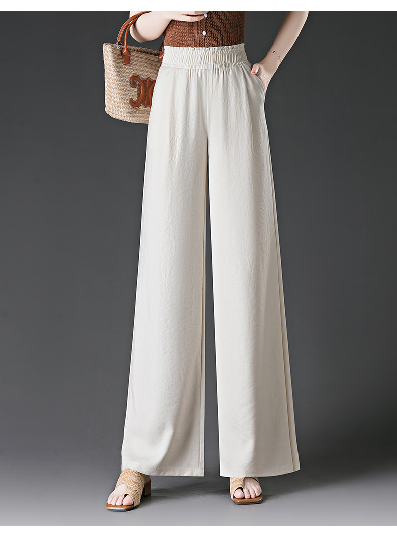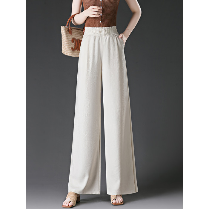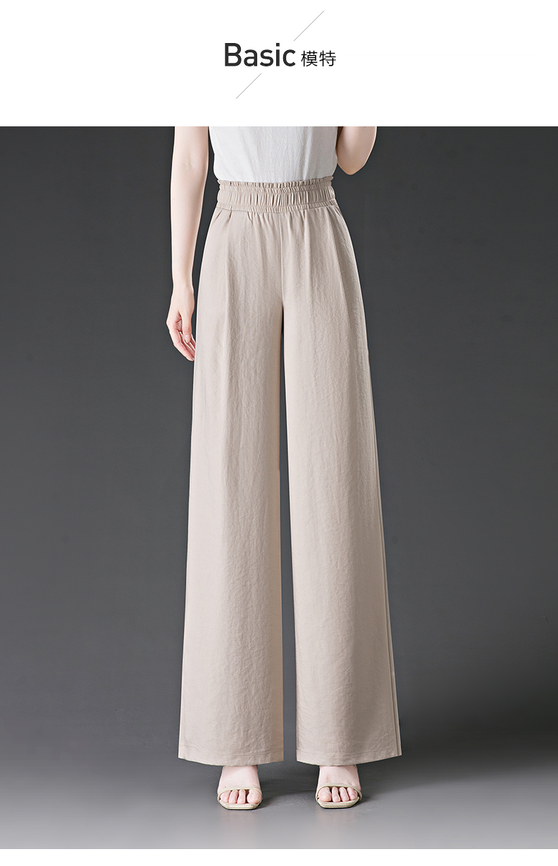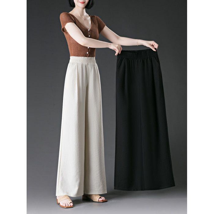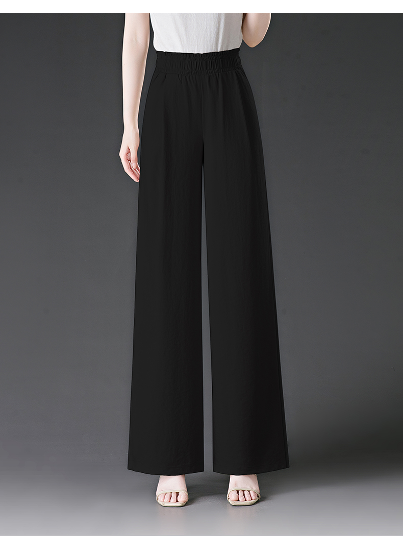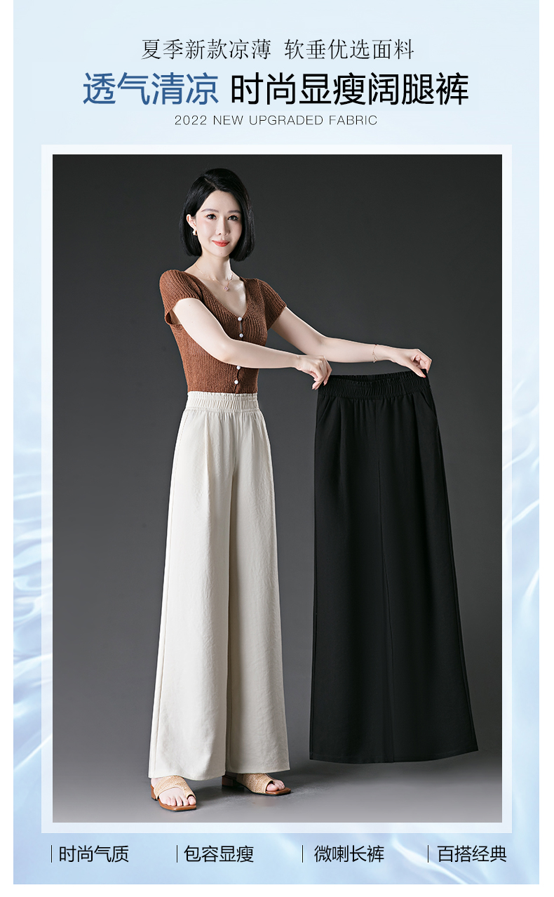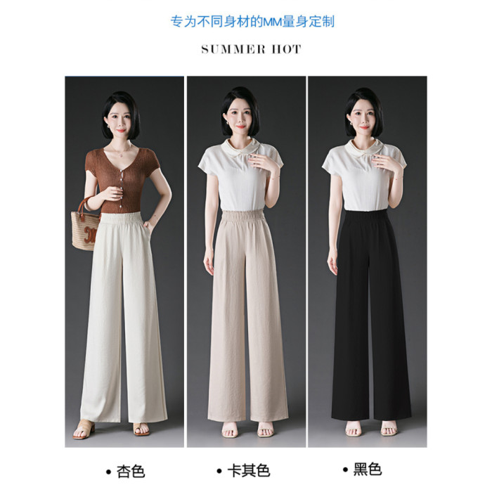 冰絲濶腿褲女2025夏季薄款松緊高腰大碼胖mm直筒褲夏天女士休閒褲