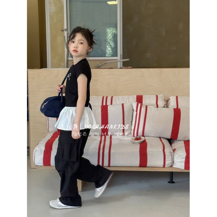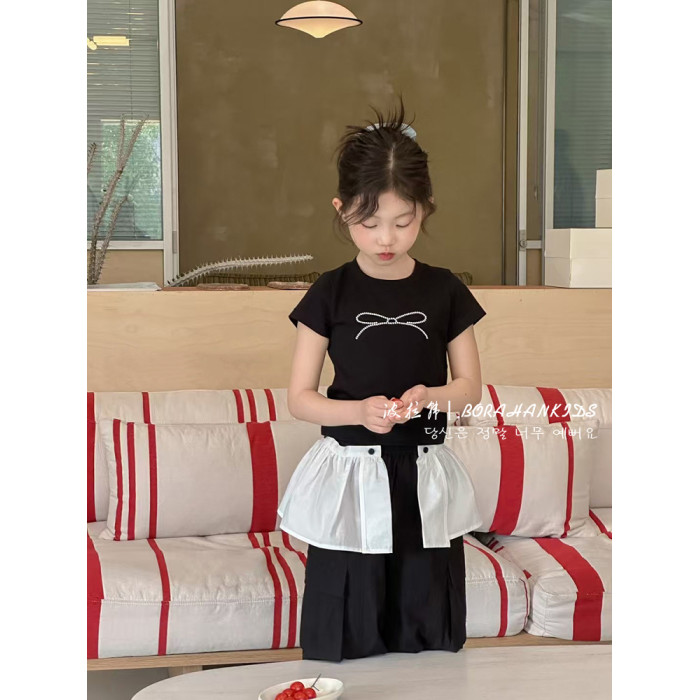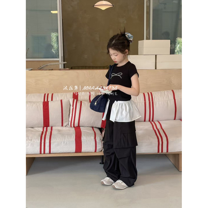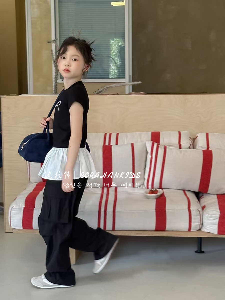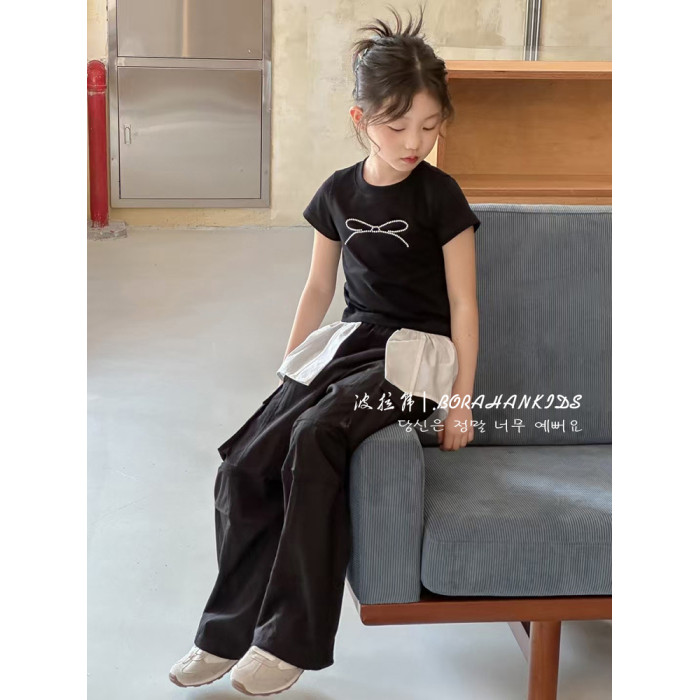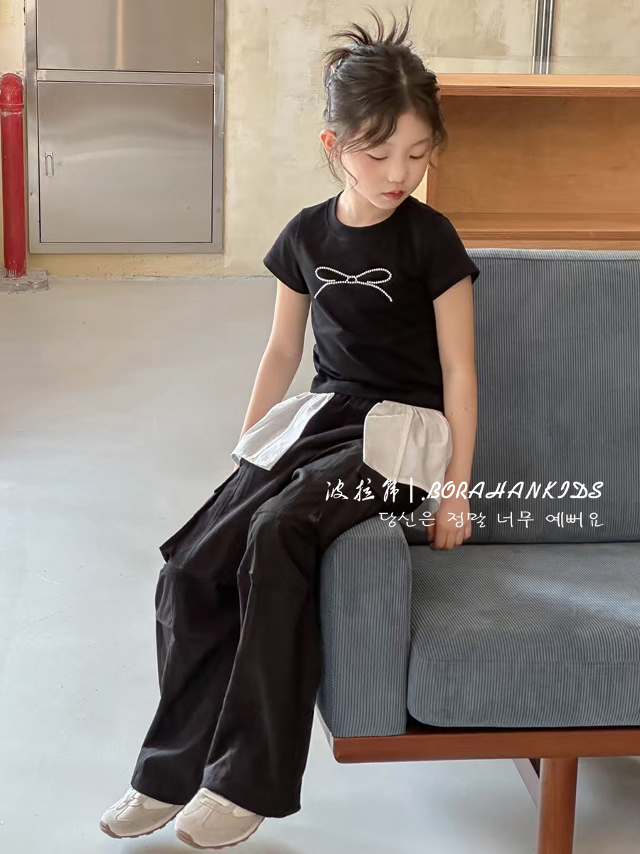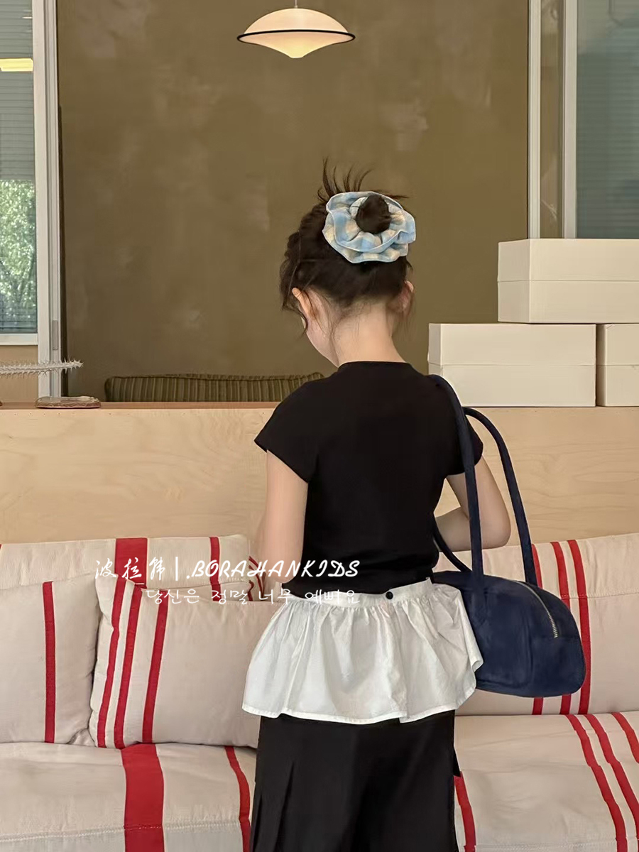波拉韓女童短袖夏裝2025兒童修身T恤新款小女孩圓領短款小t打底衫