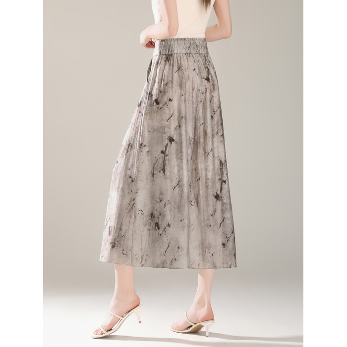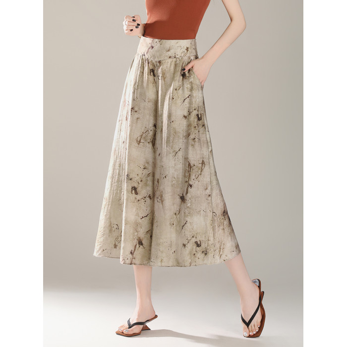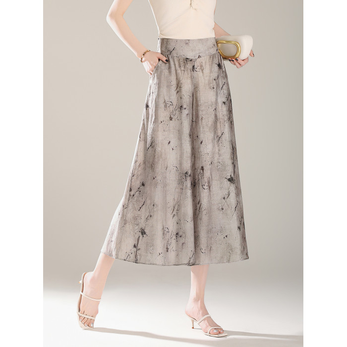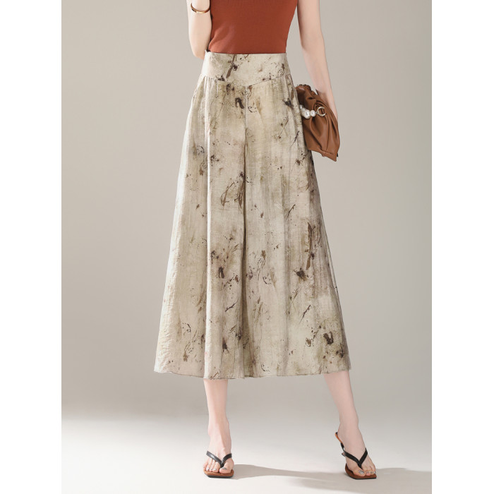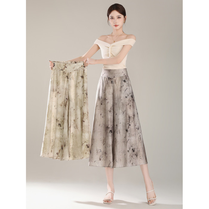 輕盈裙褲女2025夏季薄款垂感八分新中式國風褲子印花天絲濶腿褲裙